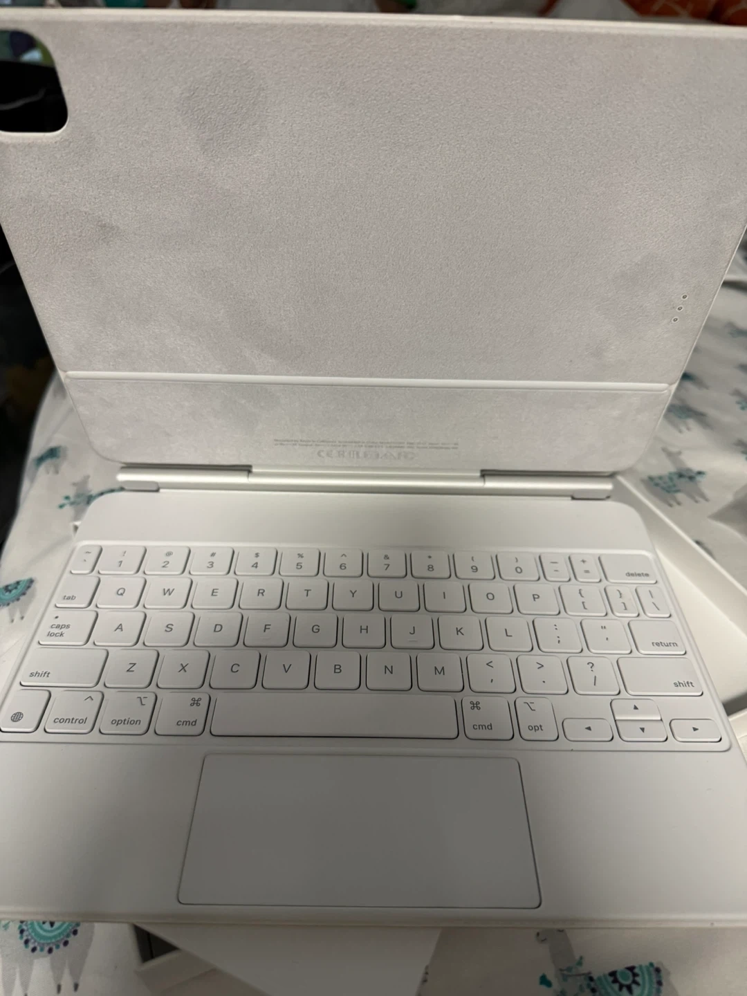 Selling an Apple iPad Magic Keyboard. It's in great condition and ready for a new home! This keyboard is designed to work seamlessly with your iPad, offering a comfortable typing experience and a sleek, integrated design. It magnetically attaches to your iPad, providing a floating cantilever design that allows you to adjust the viewing angle smoothly. The built-in trackpad adds another layer of functionality, giving you precise control and navigation capabilities