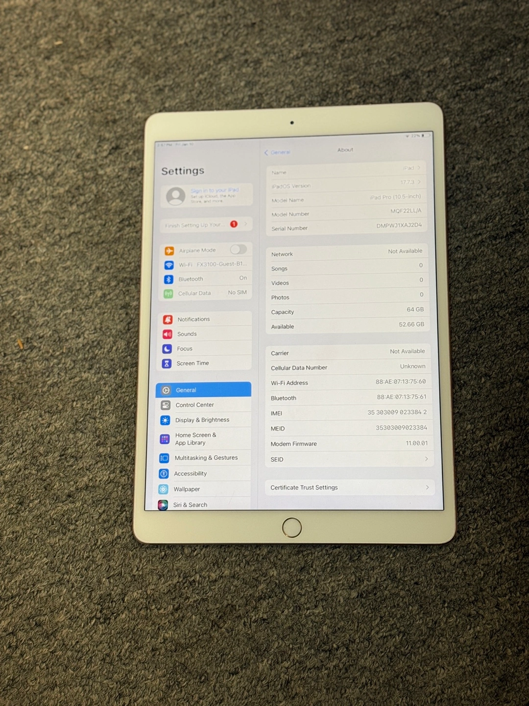 5Apple iPad Pro 10.5" 64GB Wi-Fi + Cellular Unlocked Tablet IOS 17