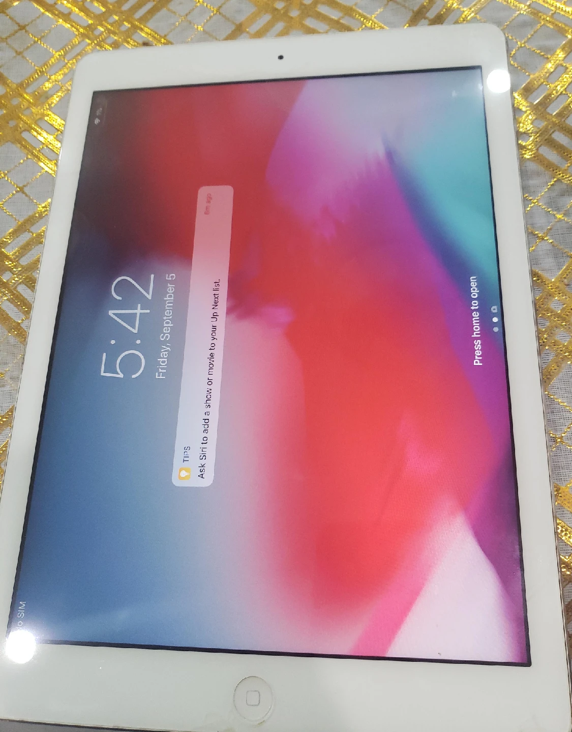 Selling a silver Apple iPad. It's in great condition and ready for a new home! It has a sleek design and is perfect for on-the-go use
