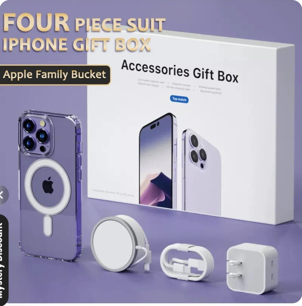 10Selling a brand new Apple iPhone accessories gift box! It's a four-piece suit that includes: - Ice crystal magnetic case - Magnetic charger - Wireless power bank - Bluetooth earphone Perfect as a gift or for personal use! Brand New still has plastic wrap paper on.