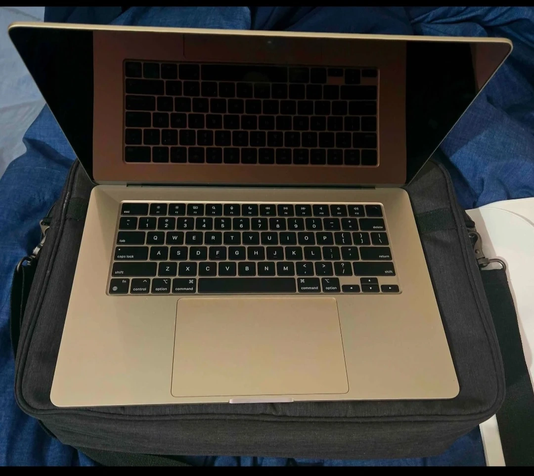 5Vendo un MacBook Air de Apple con pantalla 4K de 15 pulgadas y chip M2. Tiene 8 GB de memoria RAM y un SSD de 256 GB. Es de color gris claro. Selling an Apple MacBook Air with a 15" 4K display and the M2 chip! It features 8GB of memory and a 256GB SSD. The color is light gray.