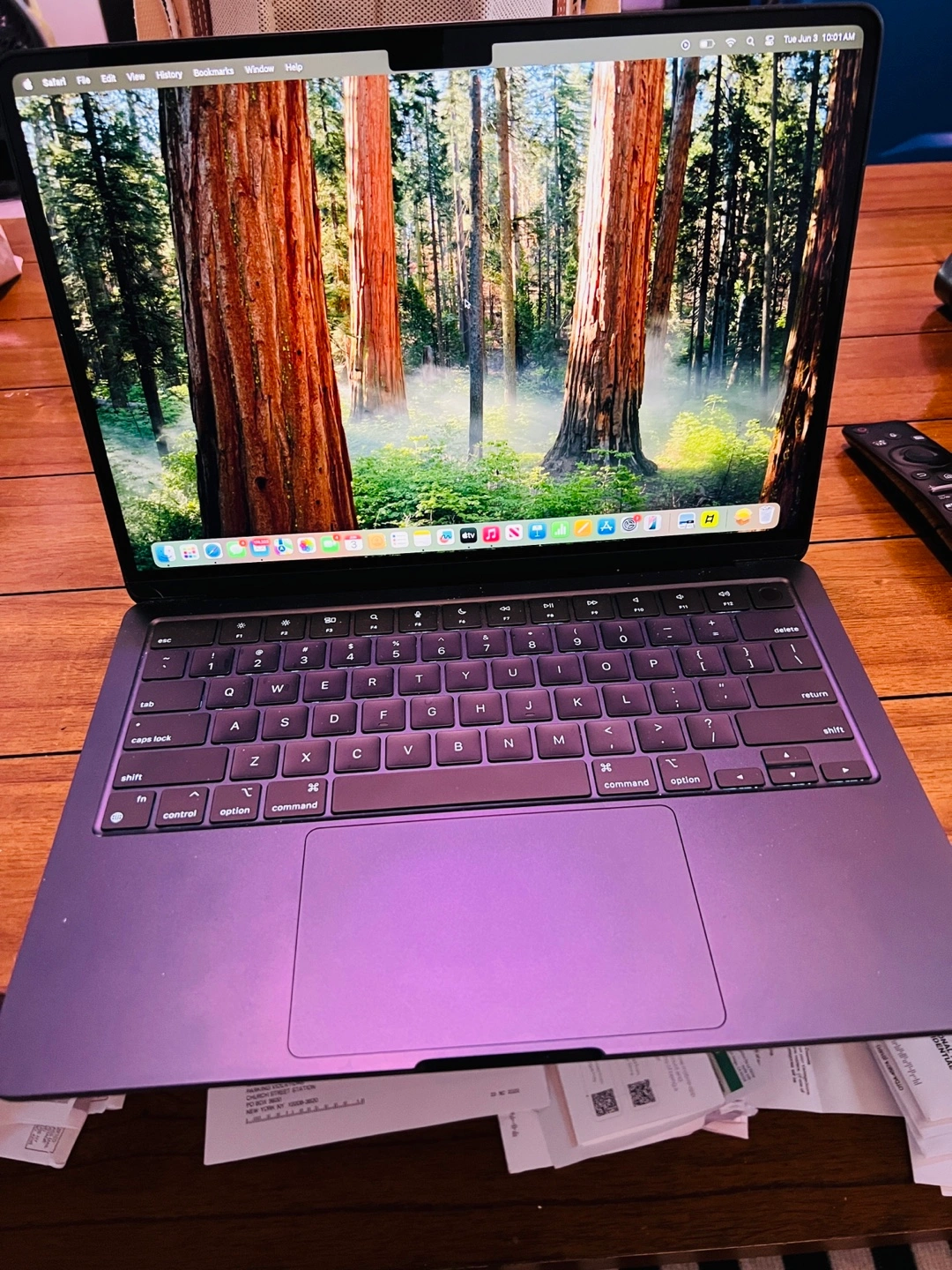 60A great choice for students or anyone who loves to work from home. The laptop is a beautiful midnight color. The keyboard looks intact. The laptop features a trackpad.