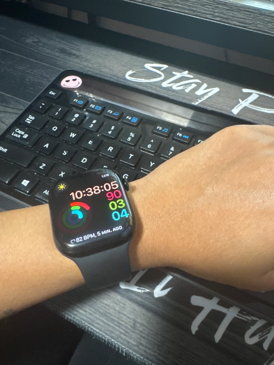 Selling an Apple Watch, great for tracking your fitness and staying connected! It displays the time and date clearly. The watch band is black.