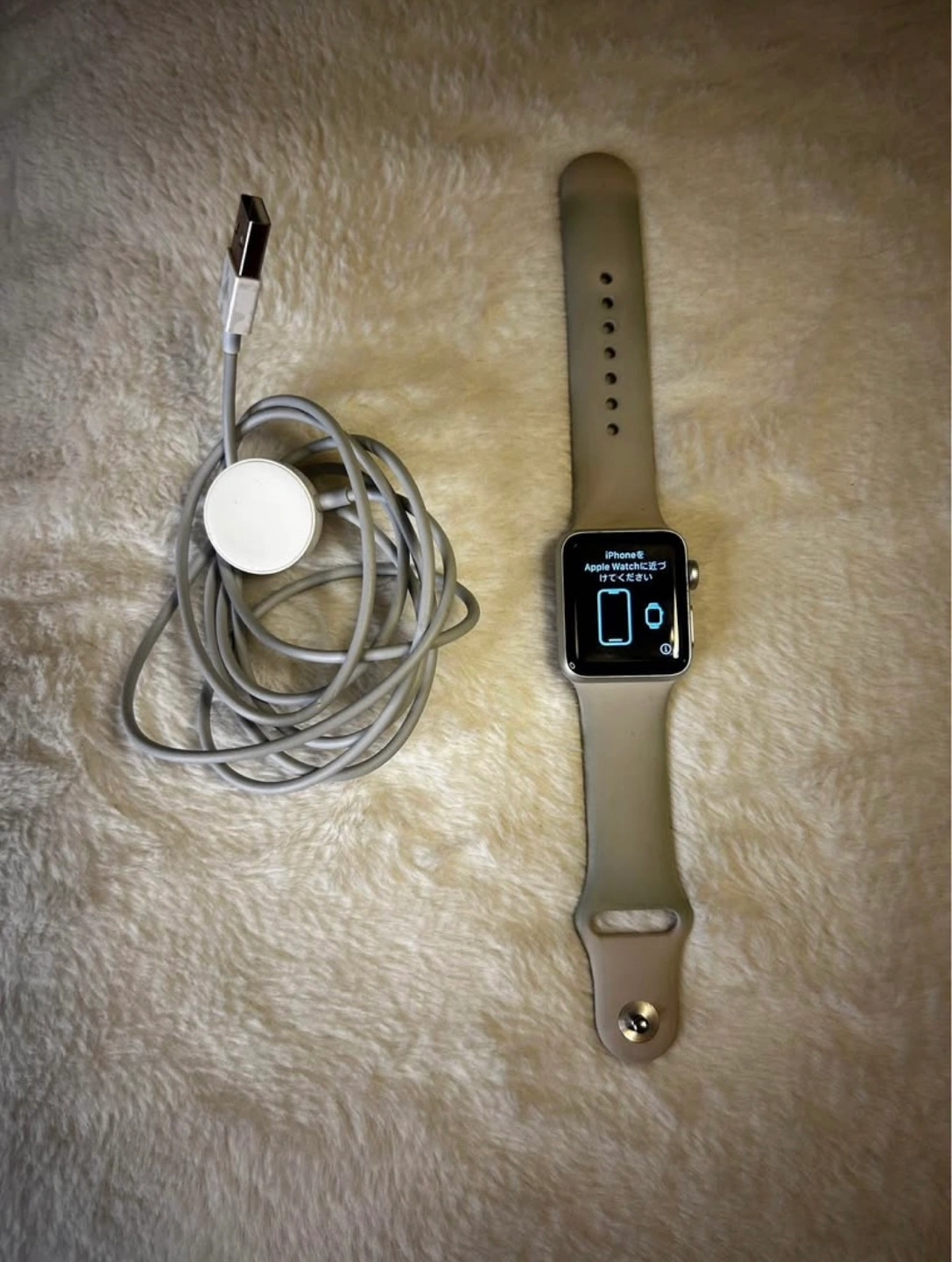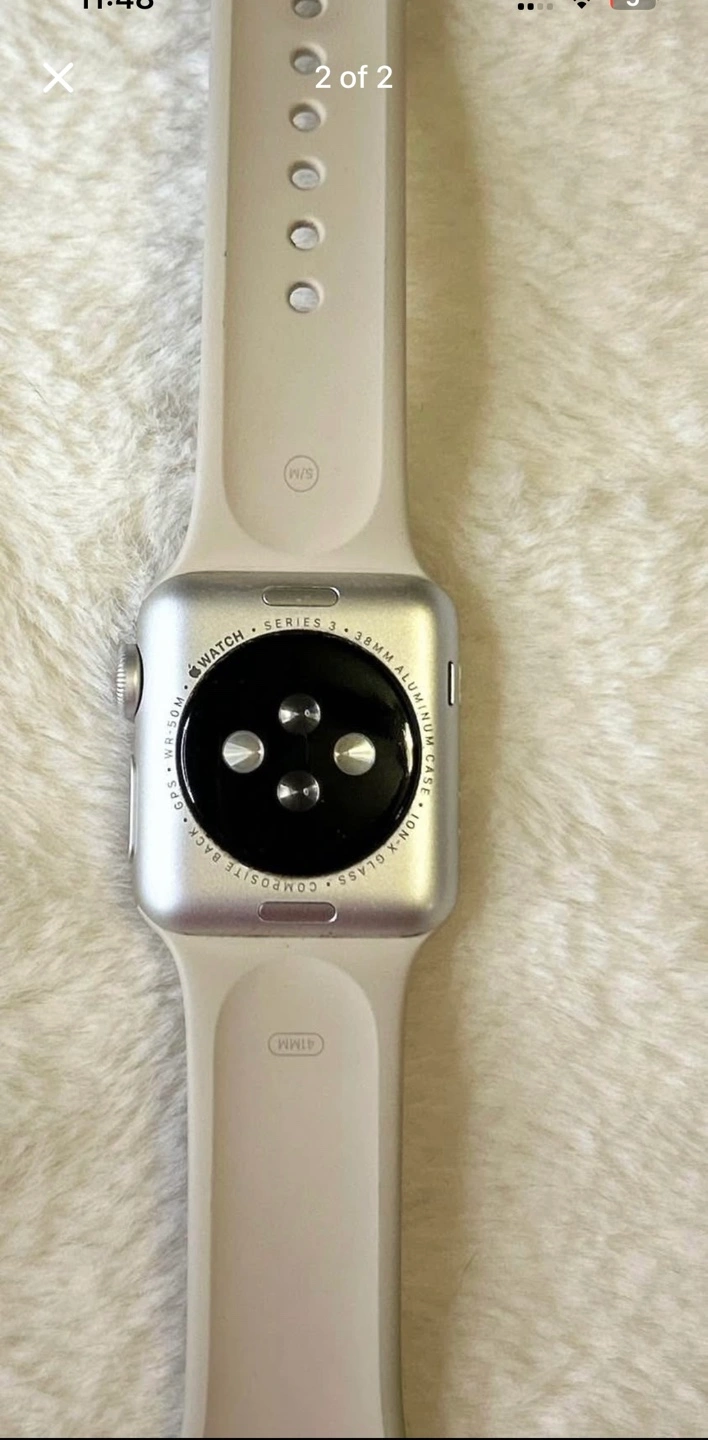 Apple Watch Series 3, 38mm aluminum case. Sport band included. Charger included. Pre-owned.