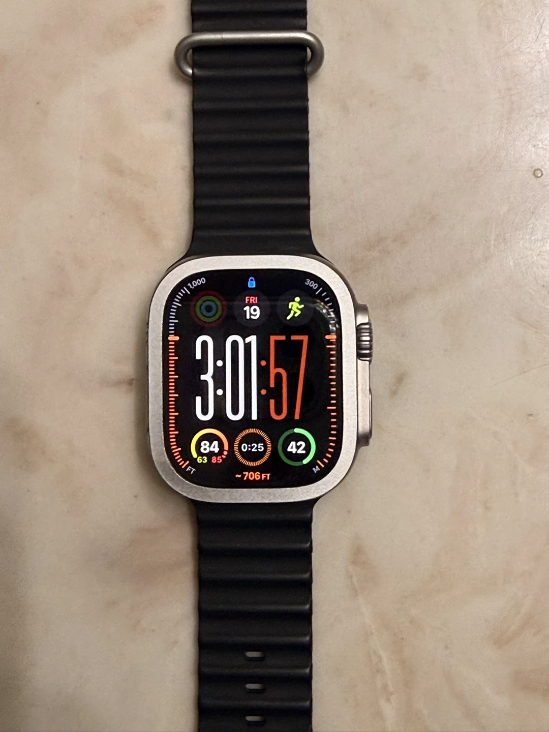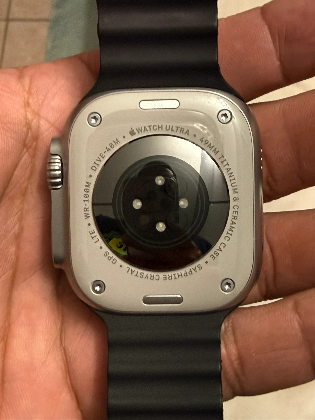 Selling an Apple Watch Ultra with a 49mm titanium case. This watch is in great condition and ready for a new owner! It features a sapphire crystal and ceramic case back.