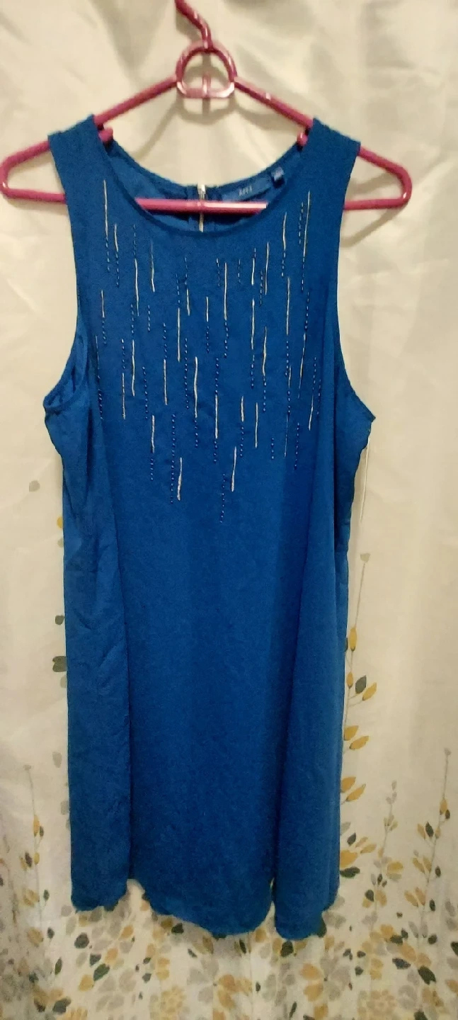 10This is a Apt. 9 blue sleeveless blouse. It has silver beaded details on the front. It's in great condition and ready for a new home!