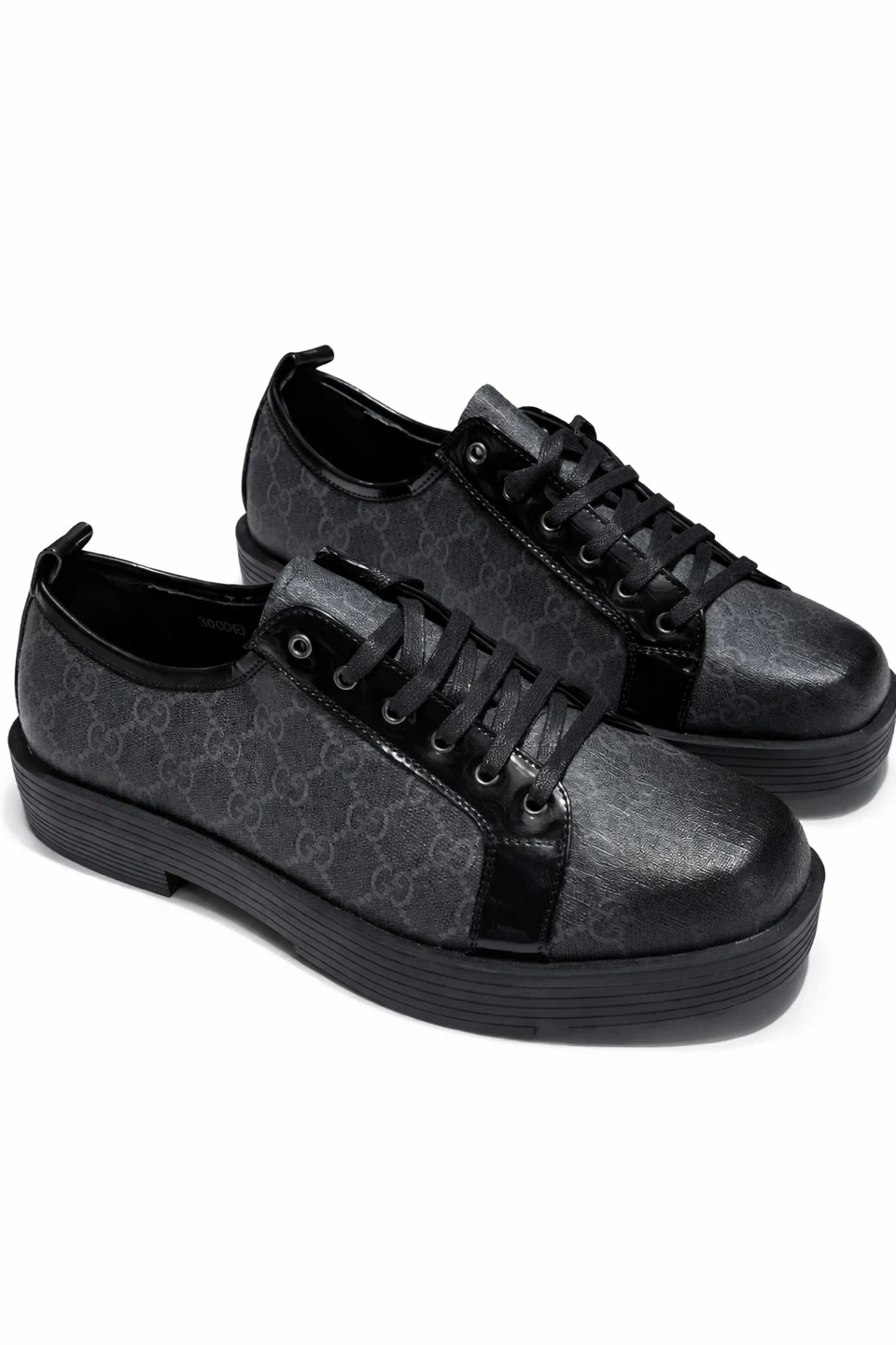 These Gucci sneakers feature the iconic GG monogram pattern in black. They have a classic lace-up closure and a durable sole. Perfect for adding a touch of luxury to any casual outfit!