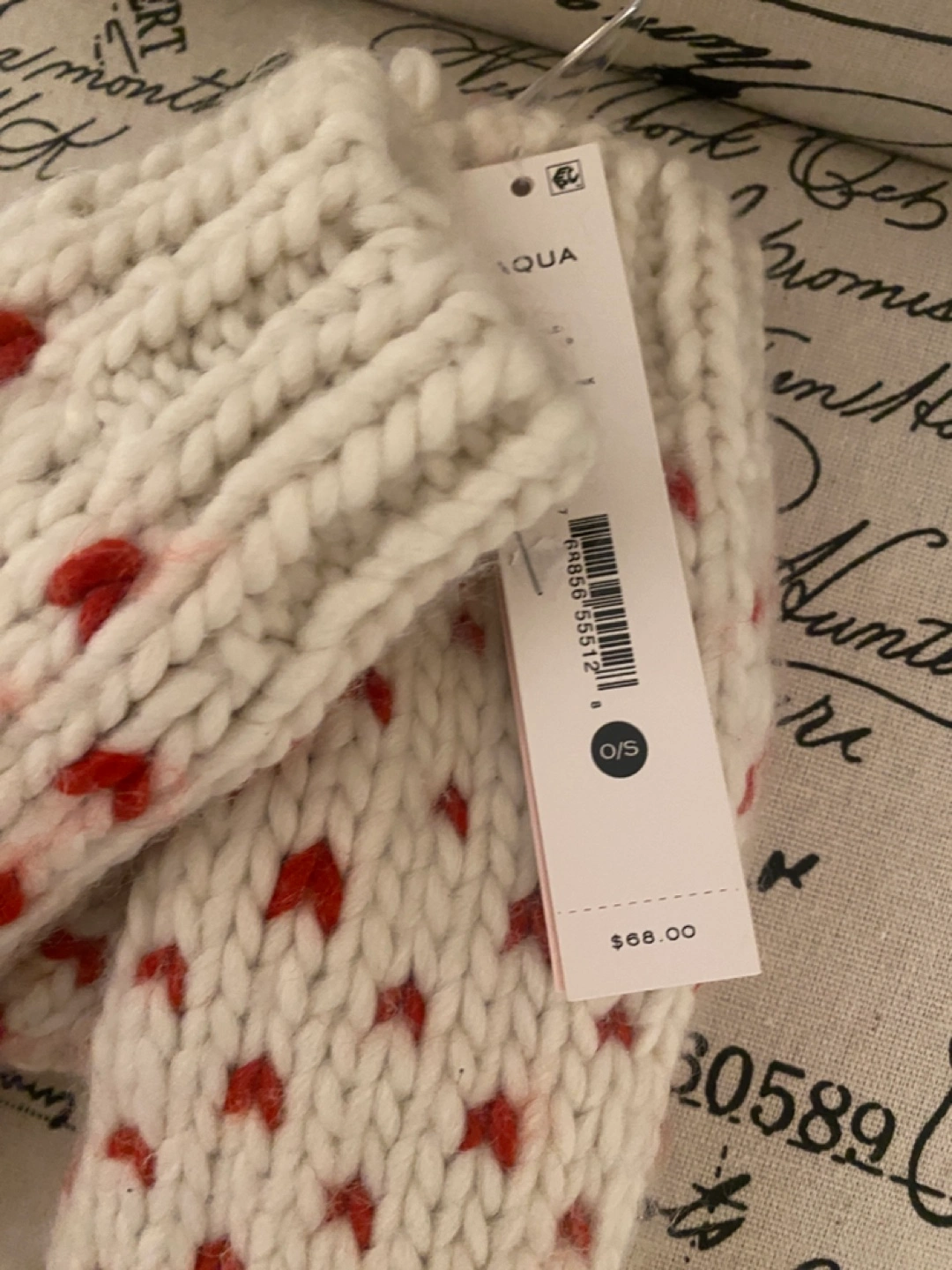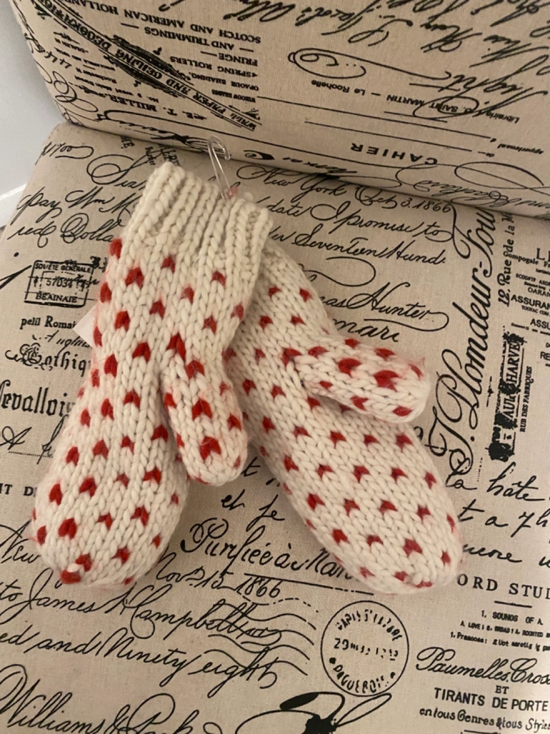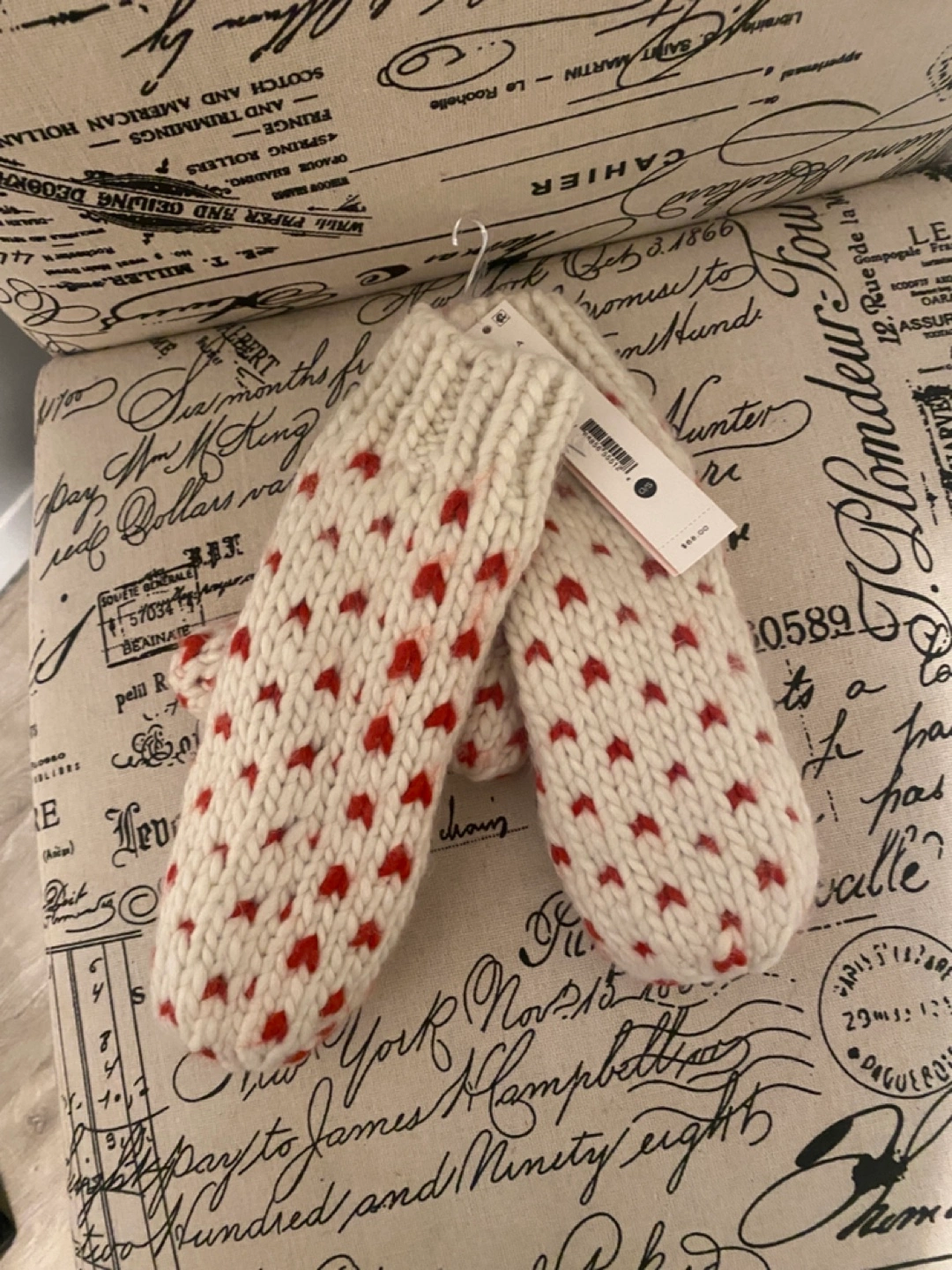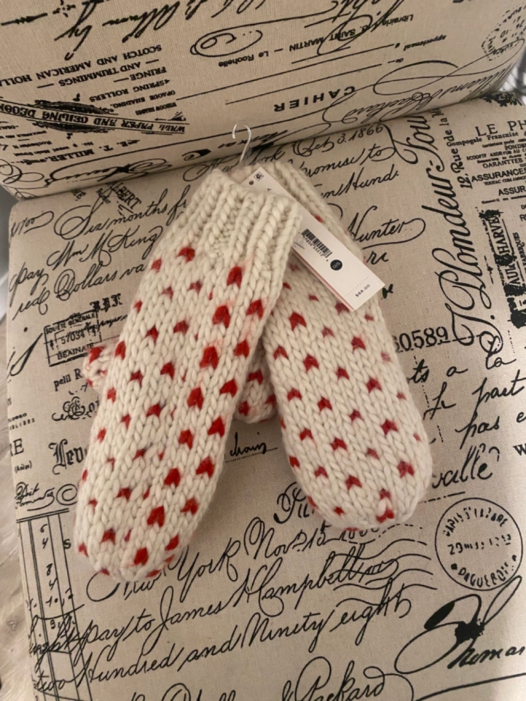 70Cream-colored mittens with red hearts. Knitted Pick up in Bensonhurst bklyn Text 347-366-4713