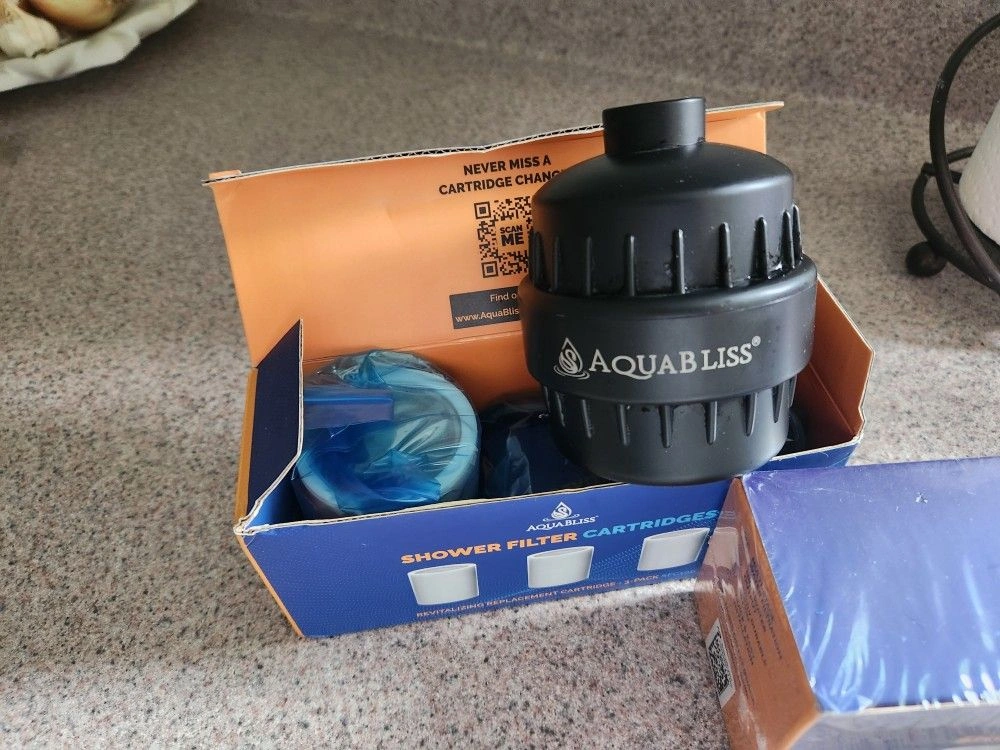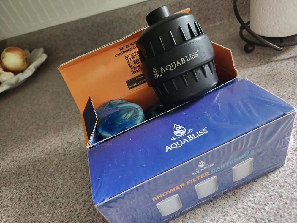 10INCLUDES 4 FILTERS! Shower filter AquaBliss High Output Reduces Dry Itchy Skin, Dandruff, Eczema, improves Condition of Skin, Hair and Nails Matte Black Color: Black