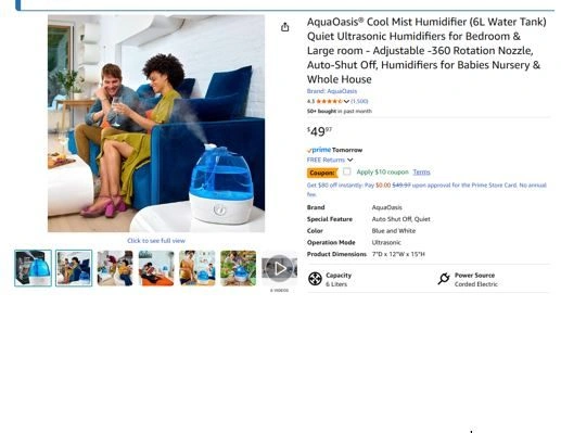 Selling AquaOasis™ Cool Mist Humidifier (6L Water Tank). Quiet ultrasonic humidifier, perfect for bedroom, nursery, or large room. Long runtime with 6L capacity and adjustable mist settings. ✔️ Condition: Like New / Gently Used (works perfectly) ✔️ Whisper-quiet operation for restful sleep ✔️ Large tank = less frequent refills Pick-up only: Evanston downtown Price: $20 (negotiable for quick pickup) If interested, please message me!