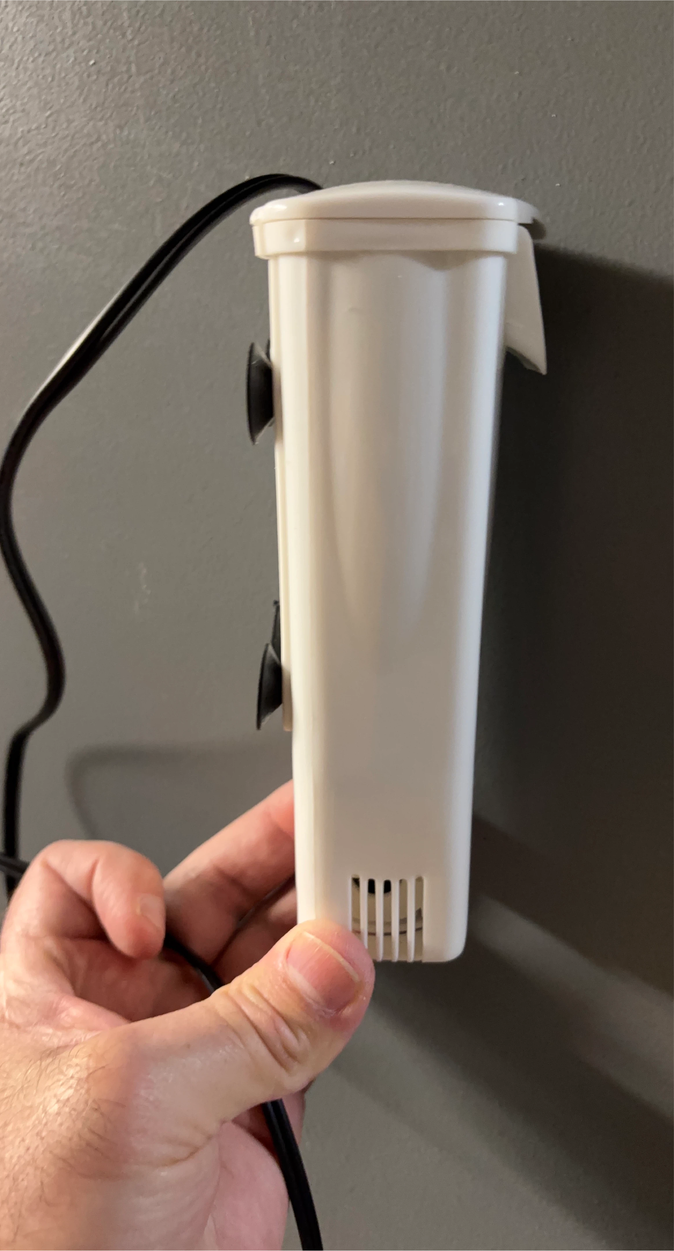 Selling an aquarium internal filter. It is white and has suction cups for easy attachment to the tank wall. Perfect for keeping your fish tank clean and healthy