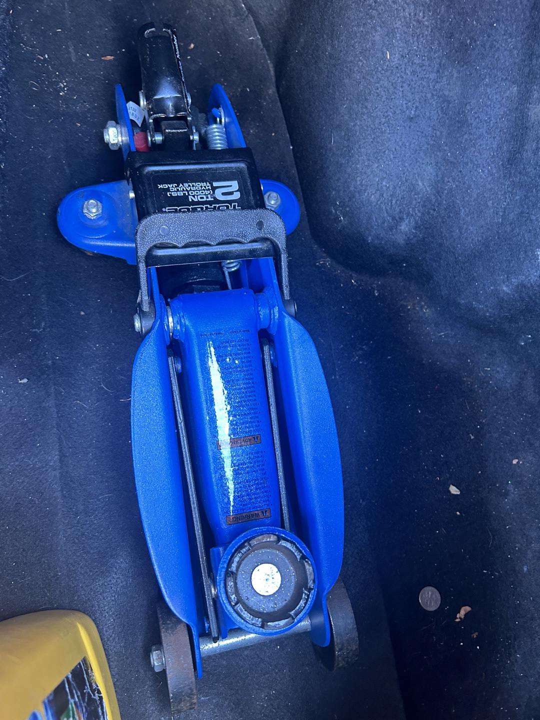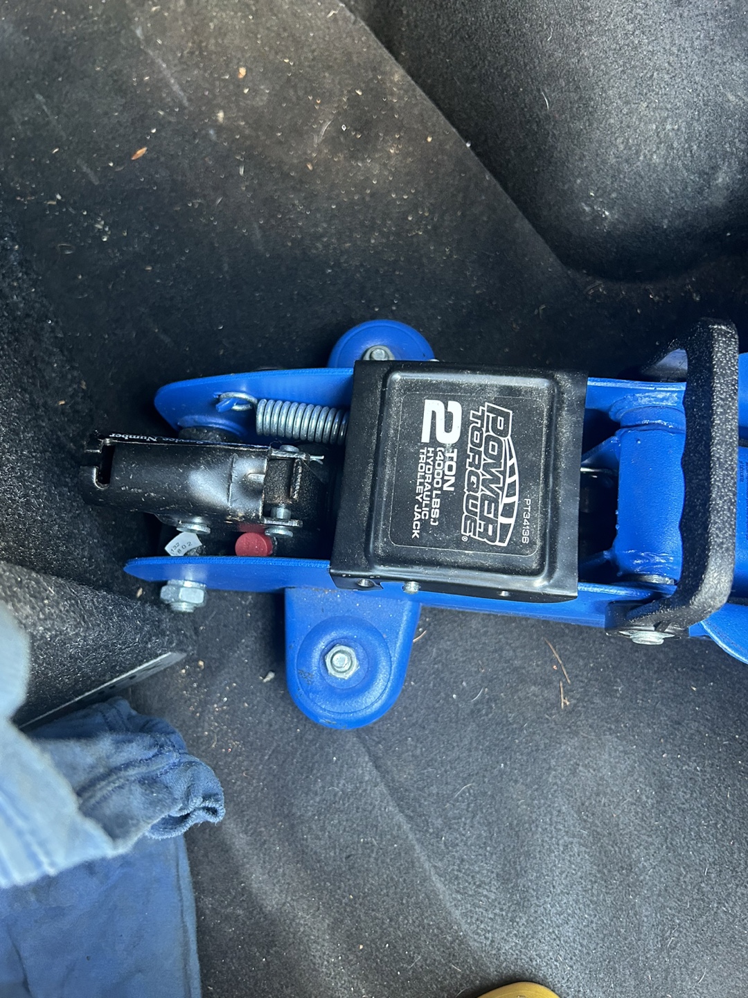 Selling a Power Torque 2 Ton Hydraulic Jack in blue. It's in good working condition and ready to help with your car maintenance needs
