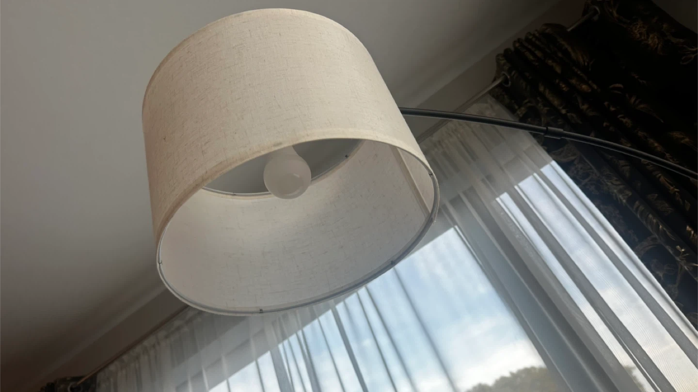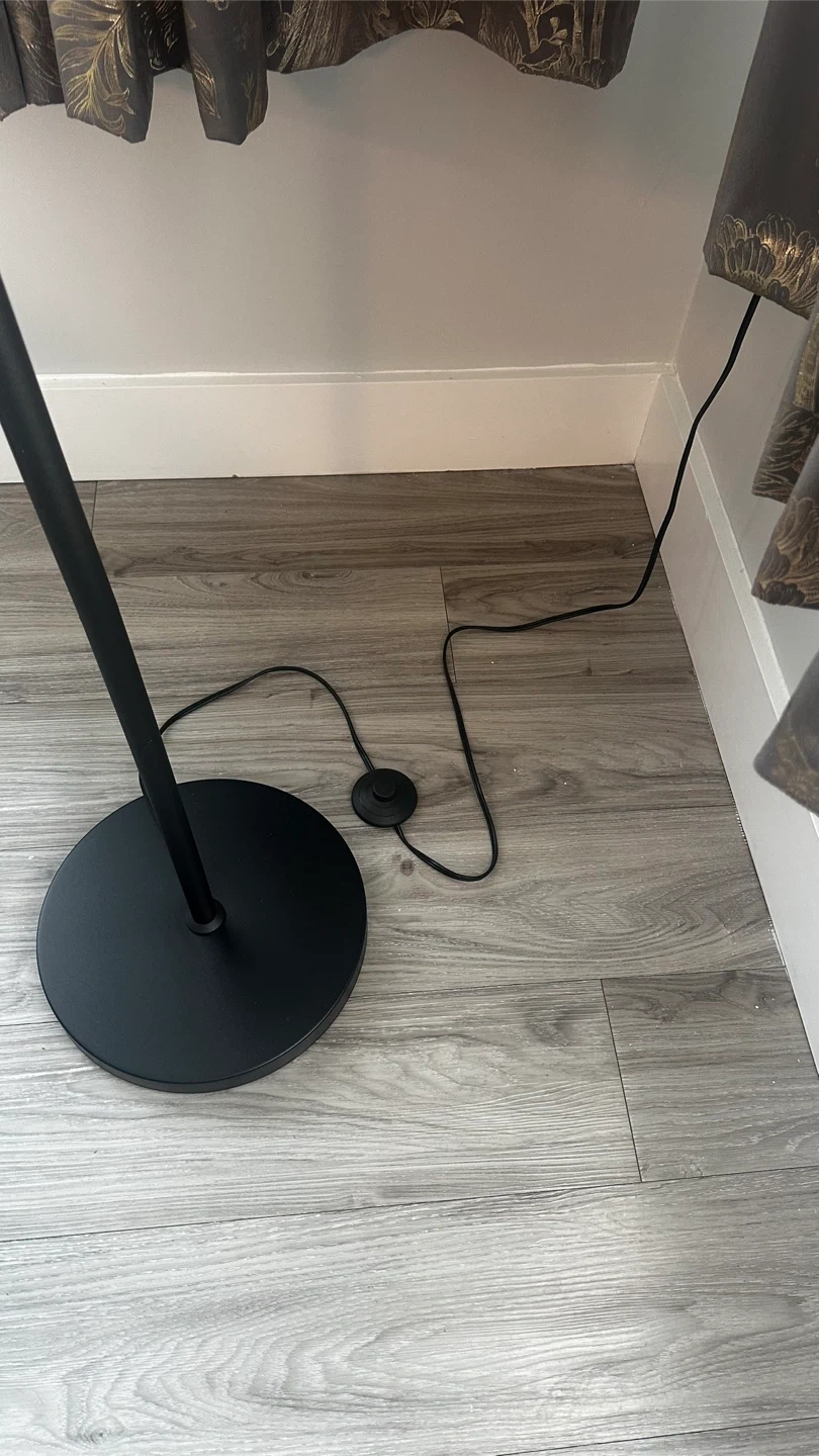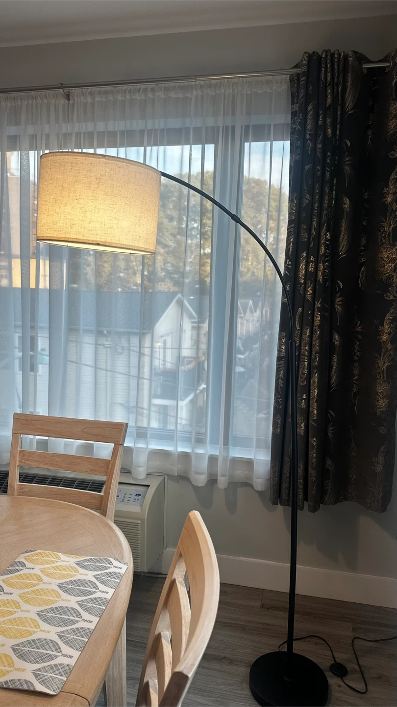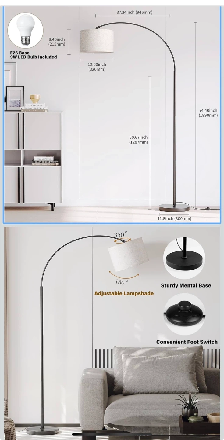 This arc floor lamp features an adjustable lampshade for directional lighting. It has a sturdy metal base and a convenient foot switch for easy operation. Selling it because we are moving.