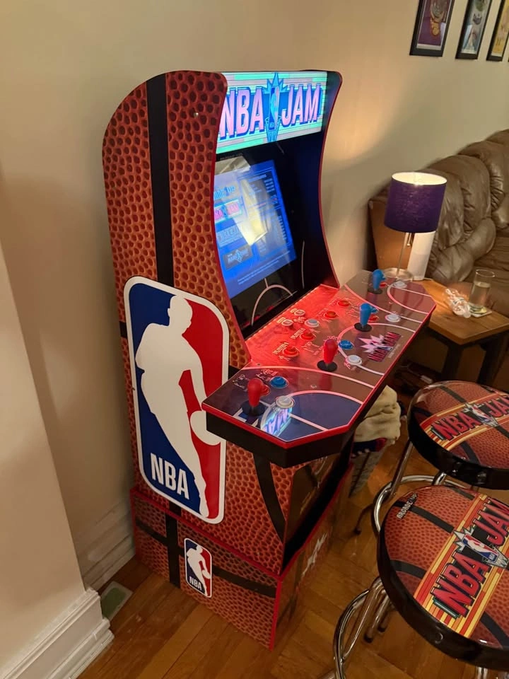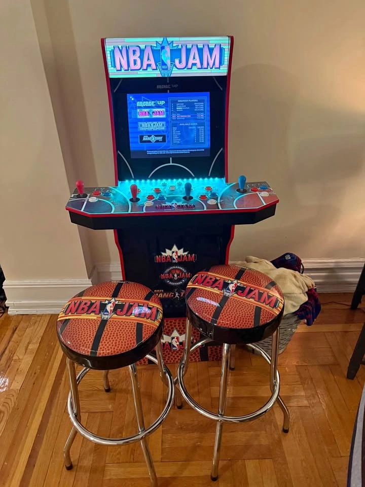 He’s on fire! Get this NBA JAM cabinet that’s practically new! Perfect for a game room, man cave, or living area. We barely played it and are selling it to make space. It is fully functional, clean, and in excellent condition. This is the highly desirable 4-player cabinet with Wi-Fi for online multiplayer and leaderboards! What's Included: • Arcade1Up NBA JAM Cabinet (Games: NBA Jam, NBA Jam Tournament Edition, NBA Hangtime) • Custom Riser (Required for stand-up play) • TWO (2) Matching NBA JAM Stools (A huge bonus, as it typically only comes with one!) • Features: Wi-Fi Multiplayer, Light-Up Marquee, 4 Sets of Player Controls. Why buy used? This model often retails for $500+ new with only one stool. Get the complete package, fully assembled, for a fraction of the cost! PICKUP DETAILS (Midtown West): • Price is firm at $300. Serious inquiries only. • Local Pickup ONLY in Midtown West (near [Cross Street or Landmark]). • The unit is currently assembled. Please confirm your vehicle size. It is tall (approx. 5ft tall on the riser) and will require a truck, large SUV, or van. • Bring your own moving help. We cannot assist with lifting or hauling.