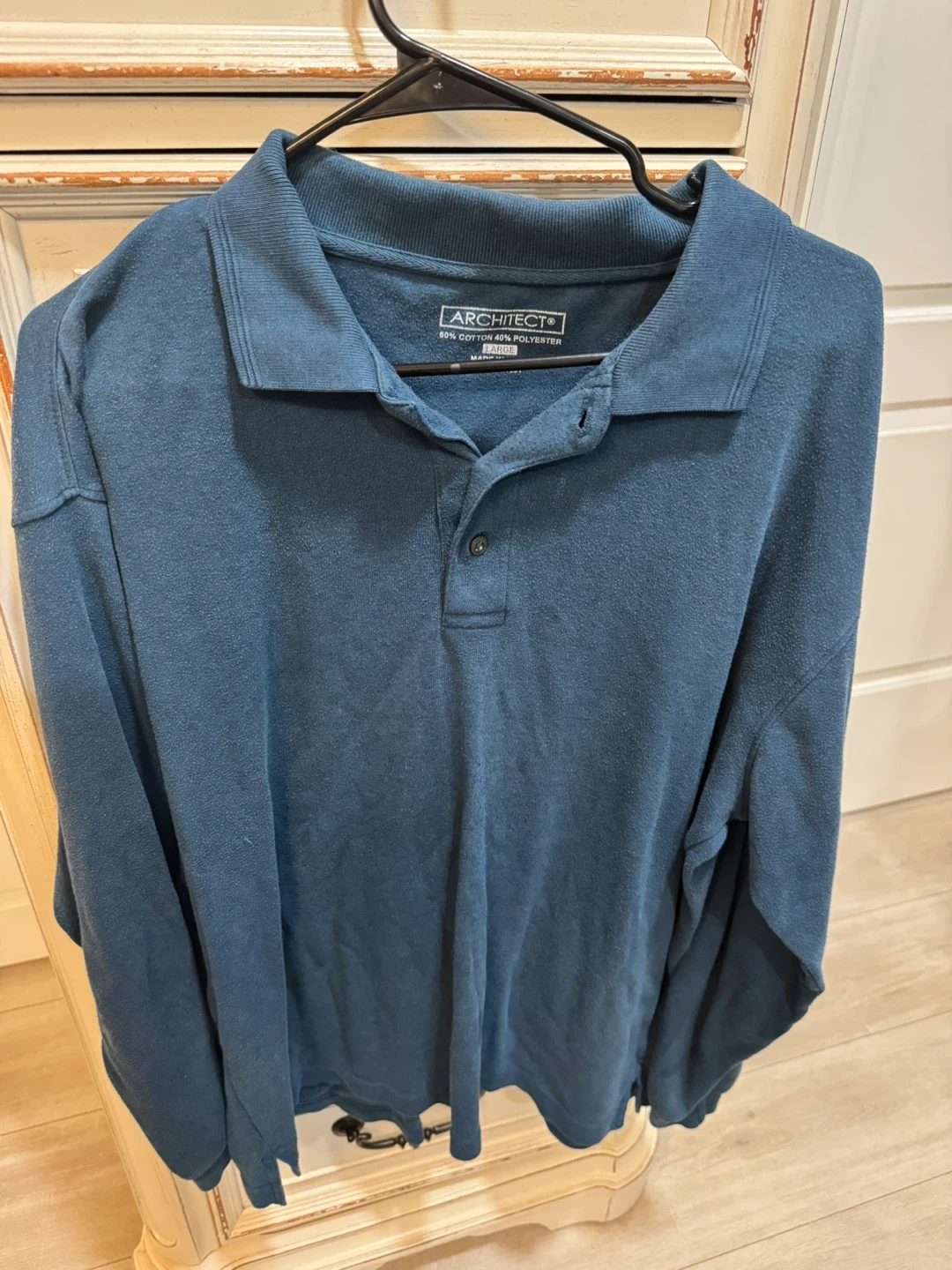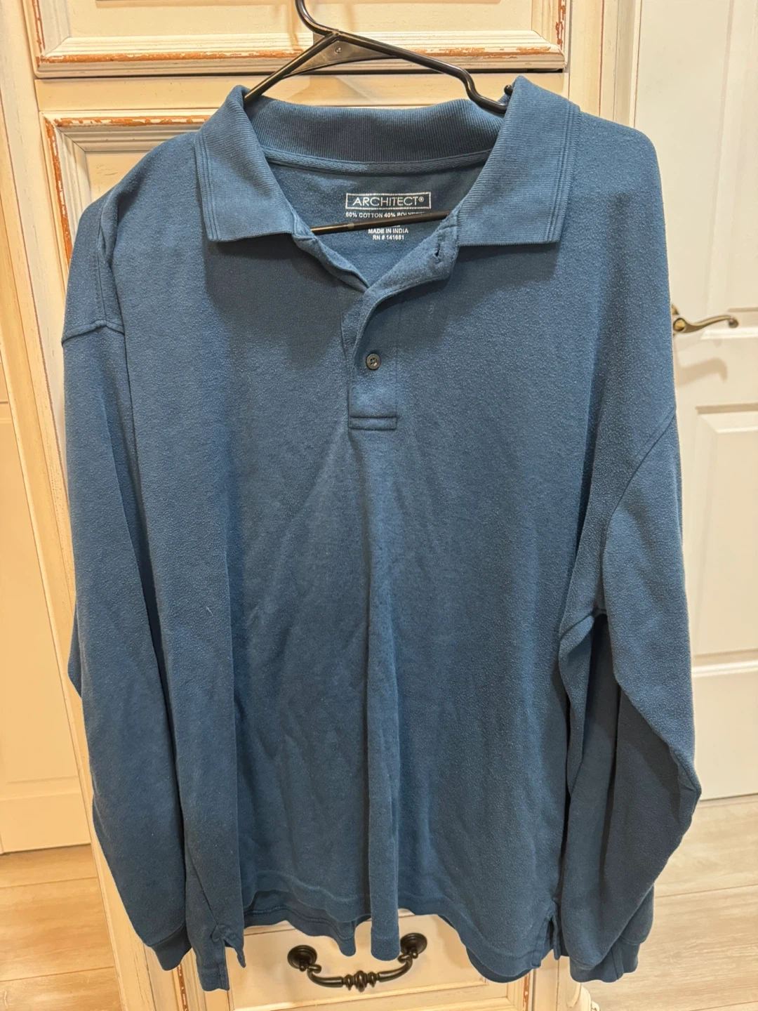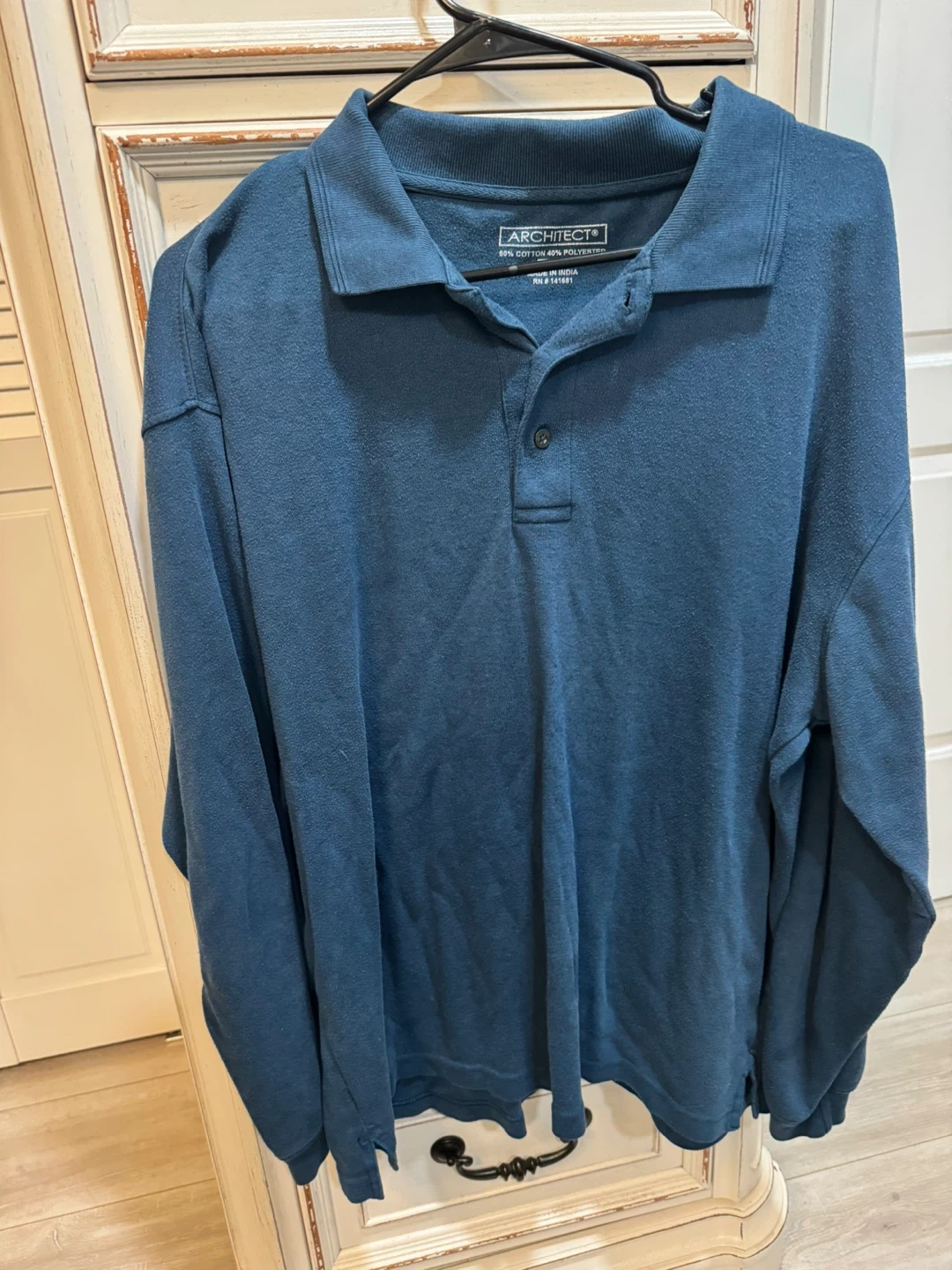 65Here's a long sleeve polo shirt from Architect! It's a size large and made of 60% cotton and 40% polyester