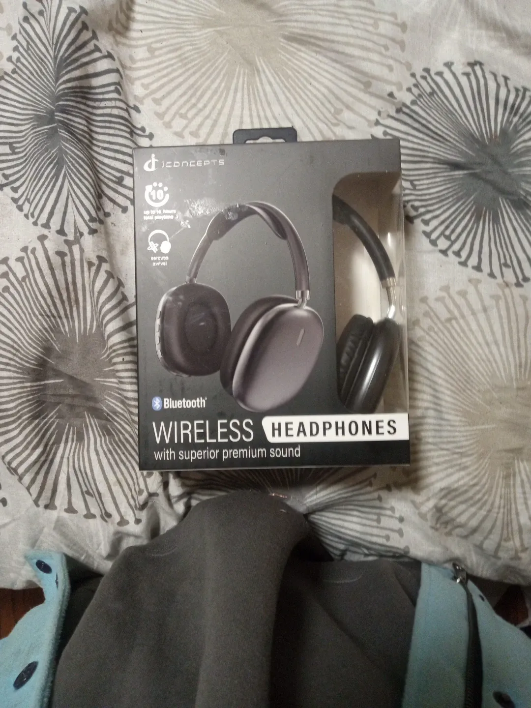 These are iConcepts wireless Bluetooth headphones. They offer up to 10 hours of total playtime and feature swivel earcups. The headphones come in black.