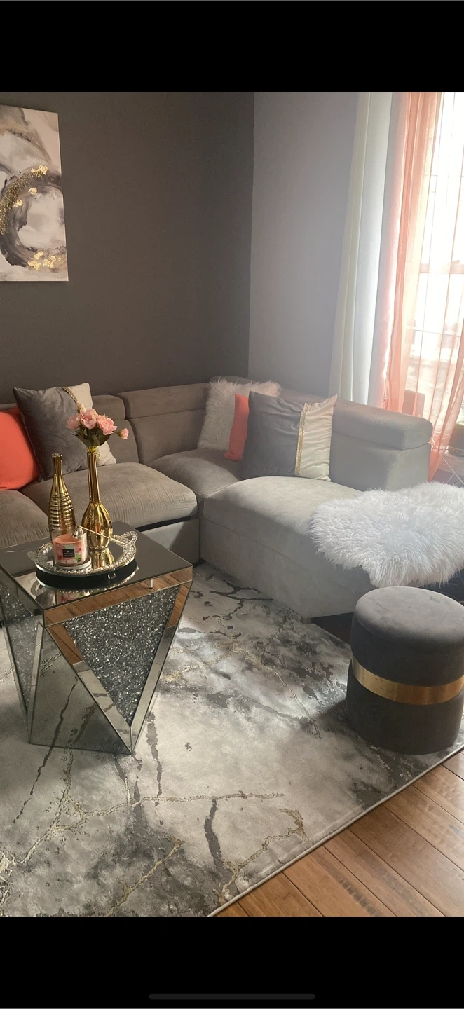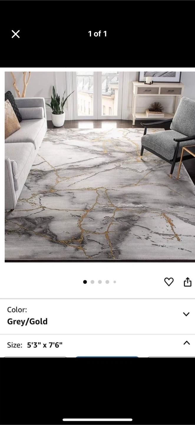 65Selling a stylish area rug in a grey and gold color scheme. The rug measures 5'3" x 7'6" and would be a great addition to any room. It's in great condition and ready for a new home! Intact and like new condition, just needs to be cleaned.
