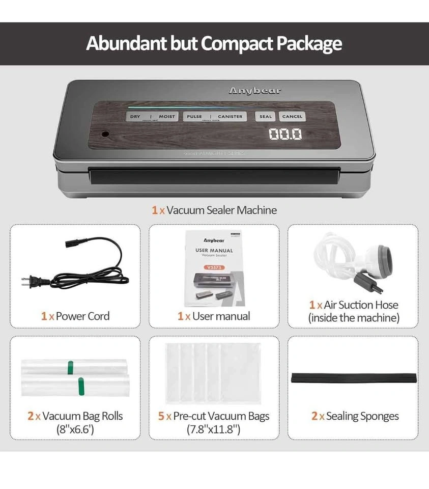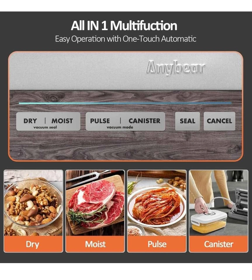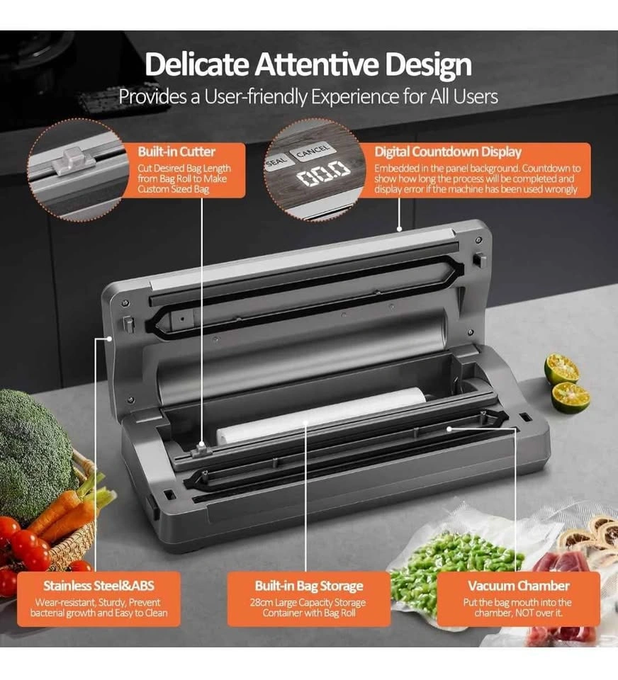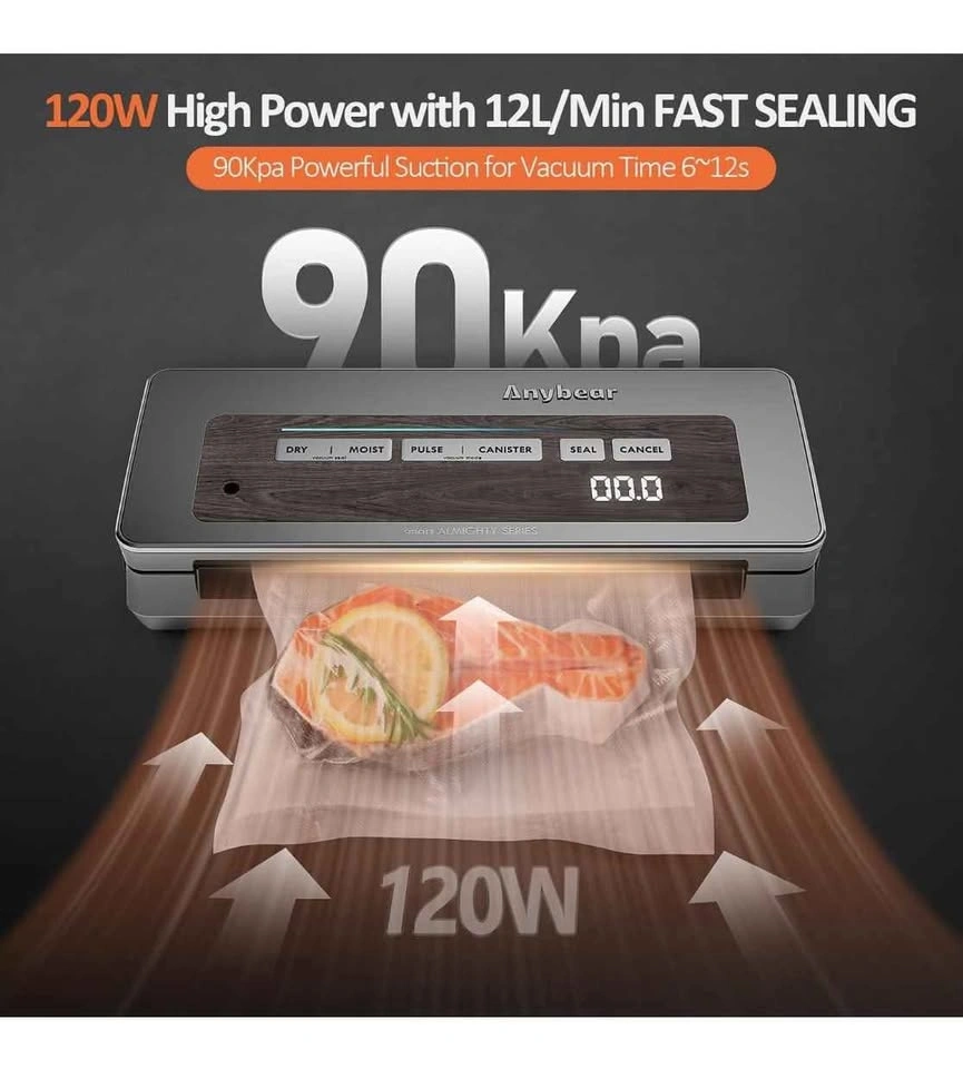 Vacuum Sealer Machine, 90kPa 120W Wide Seal All-IN-1