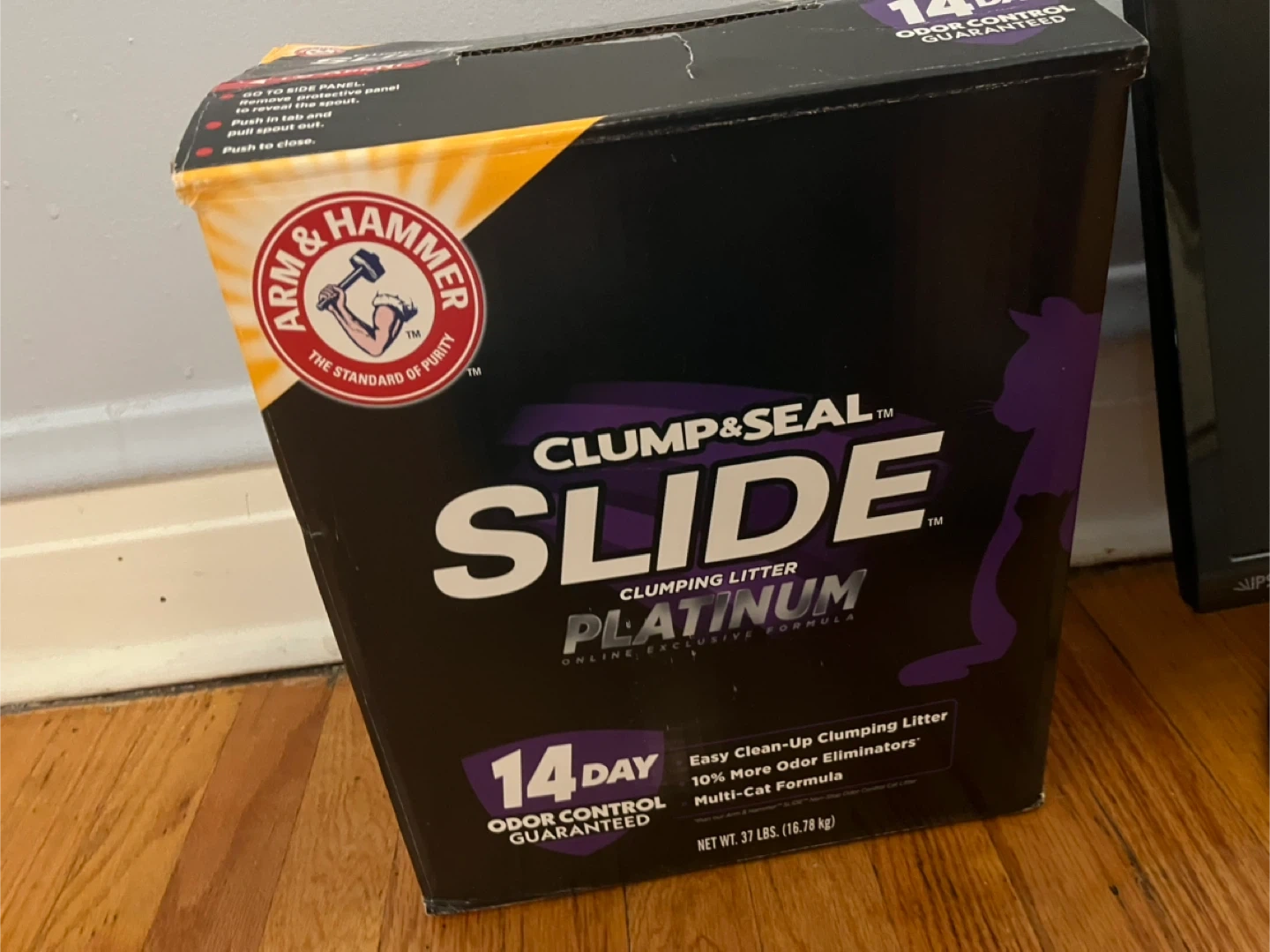 18I'm selling a box of Arm & Hammer Clump & Seal Slide Platinum clumping litter for multi-cat households! It's an easy clean-up litter that eliminates odors and comes in a 37 lb (16.78 kg) box