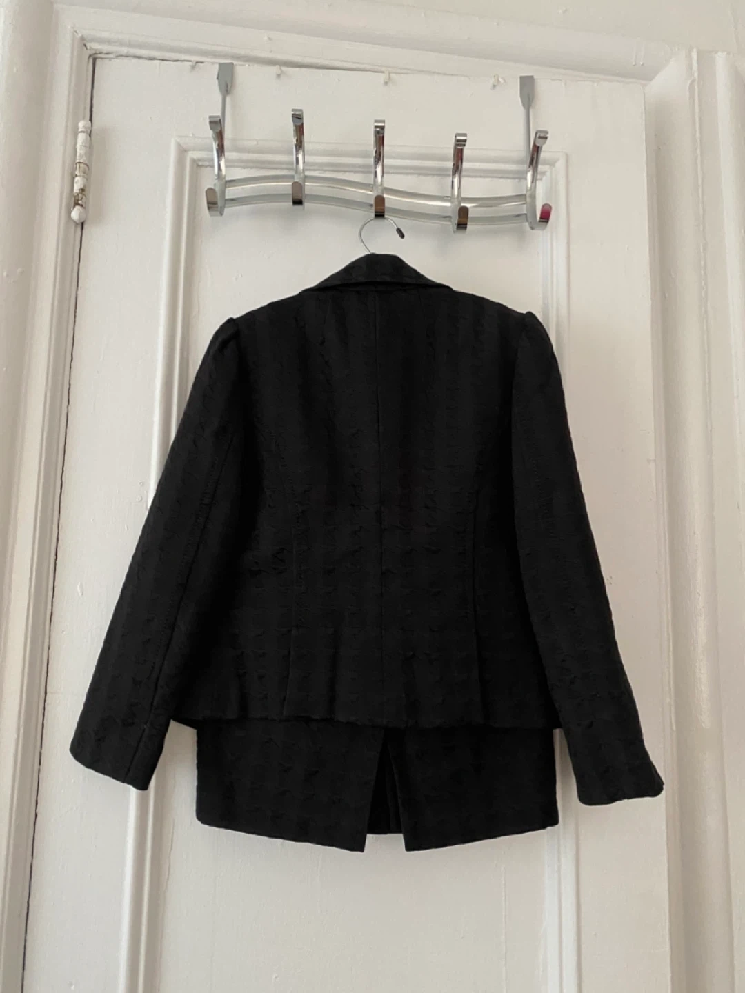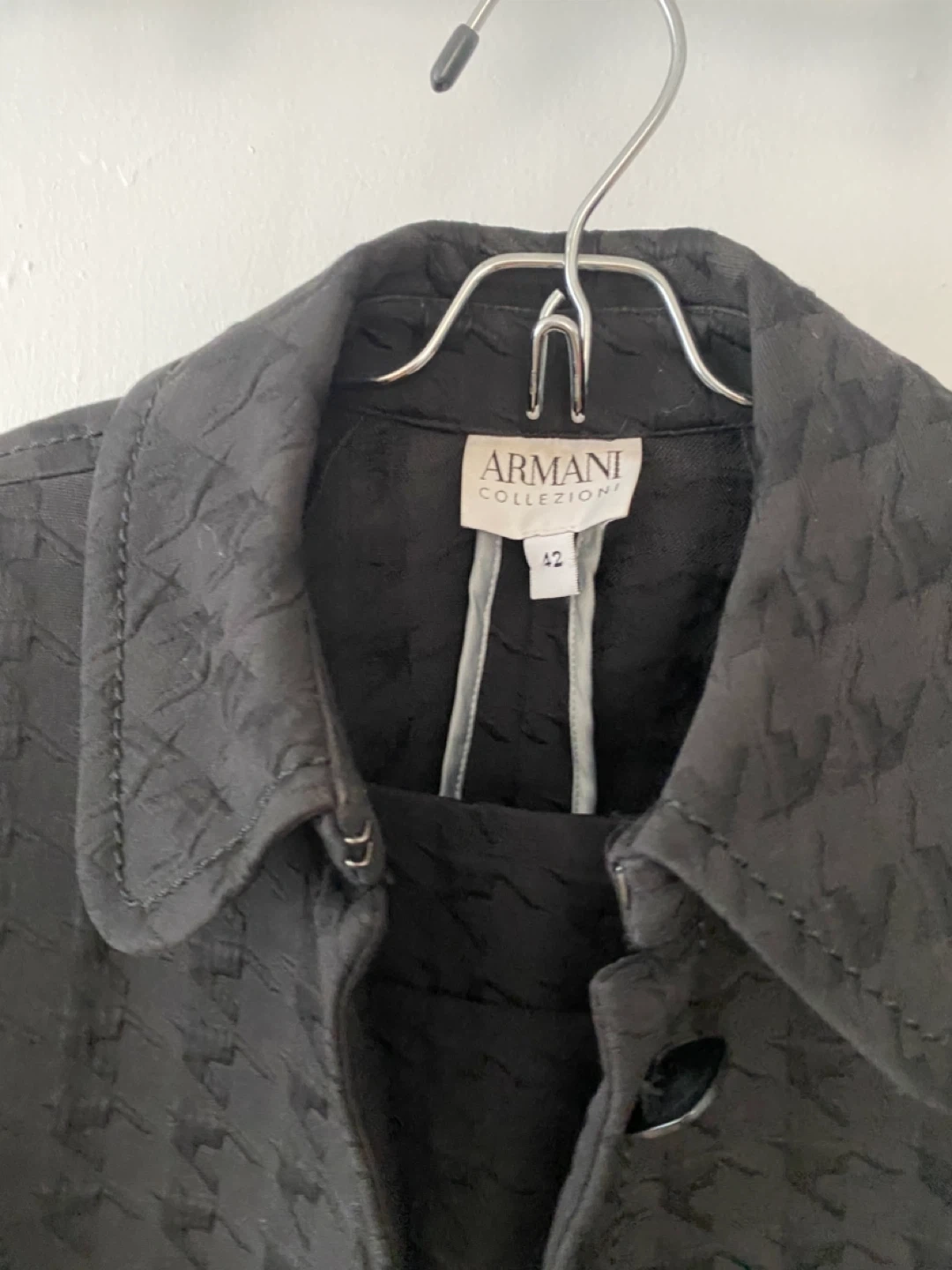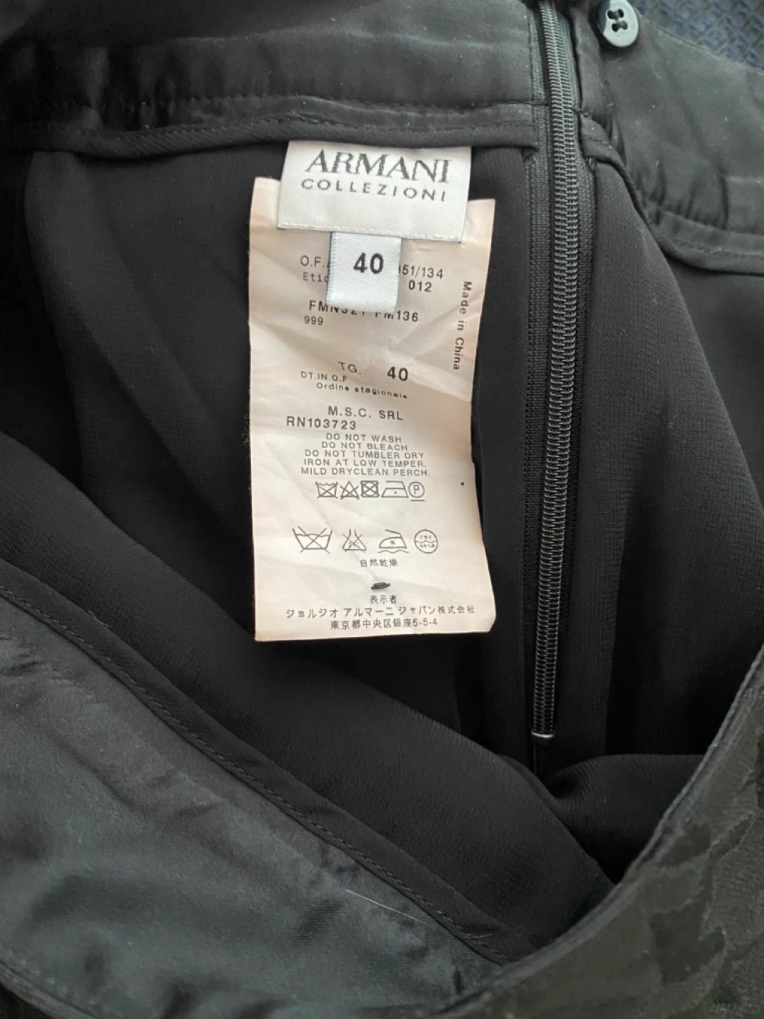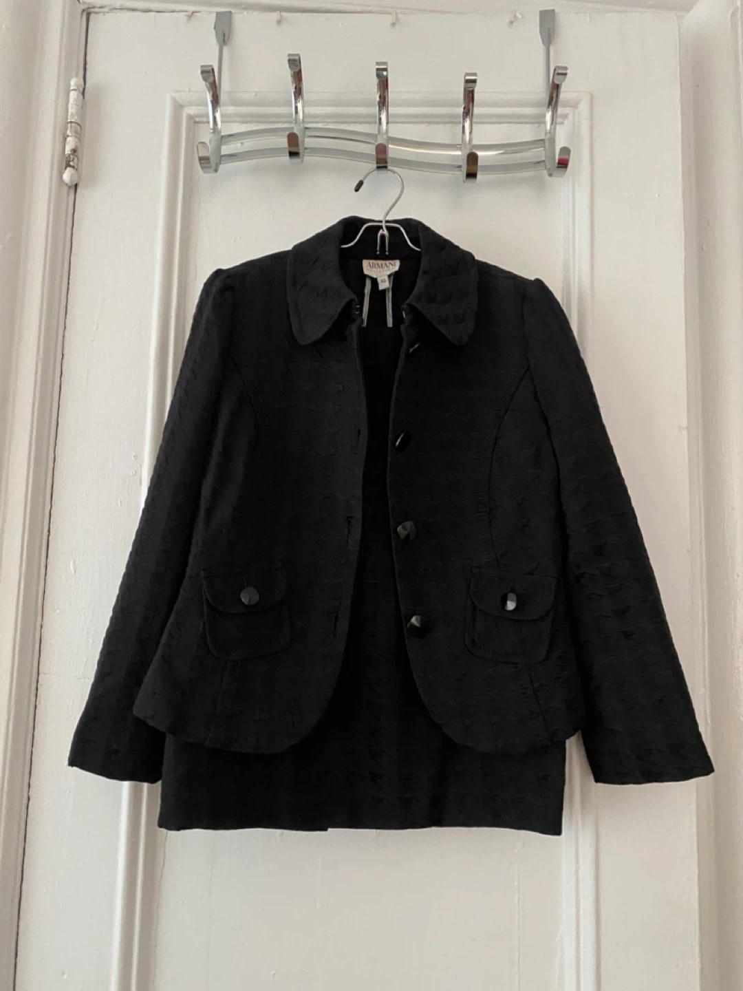 Elegant black two piece skirt suit from Armani Collection in European size 42 for jacket and skirt is size 40, in good condition, original Armani
