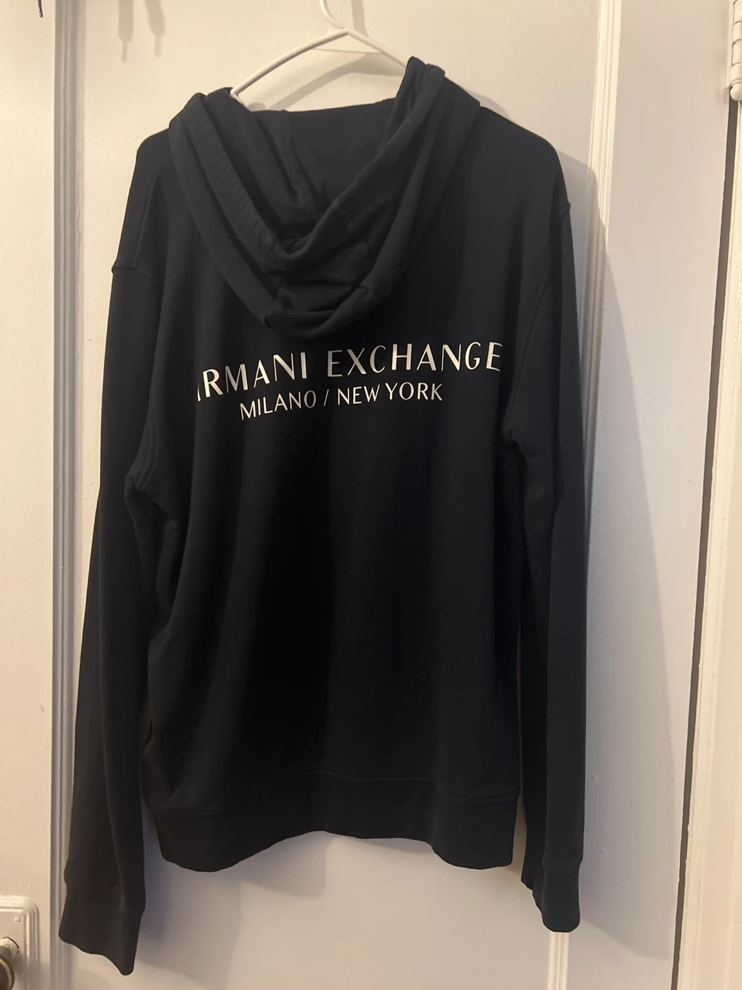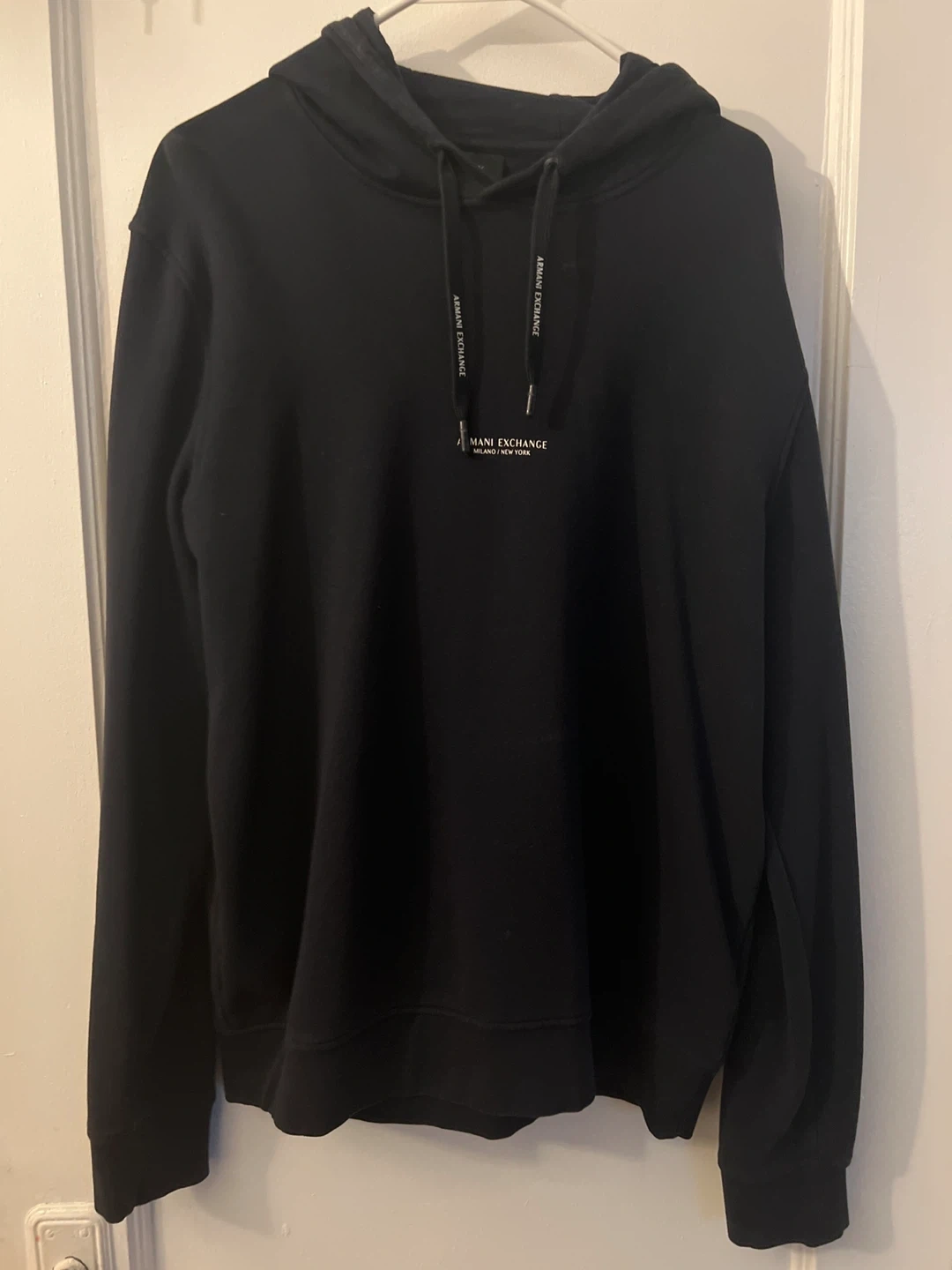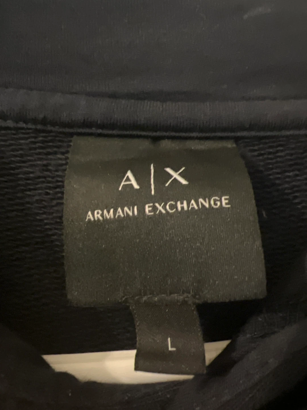 18Selling a black Armani Exchange hoodie in size L. It's in great condition and ready for a new home! The hoodie features the Armani Exchange logo across the back.