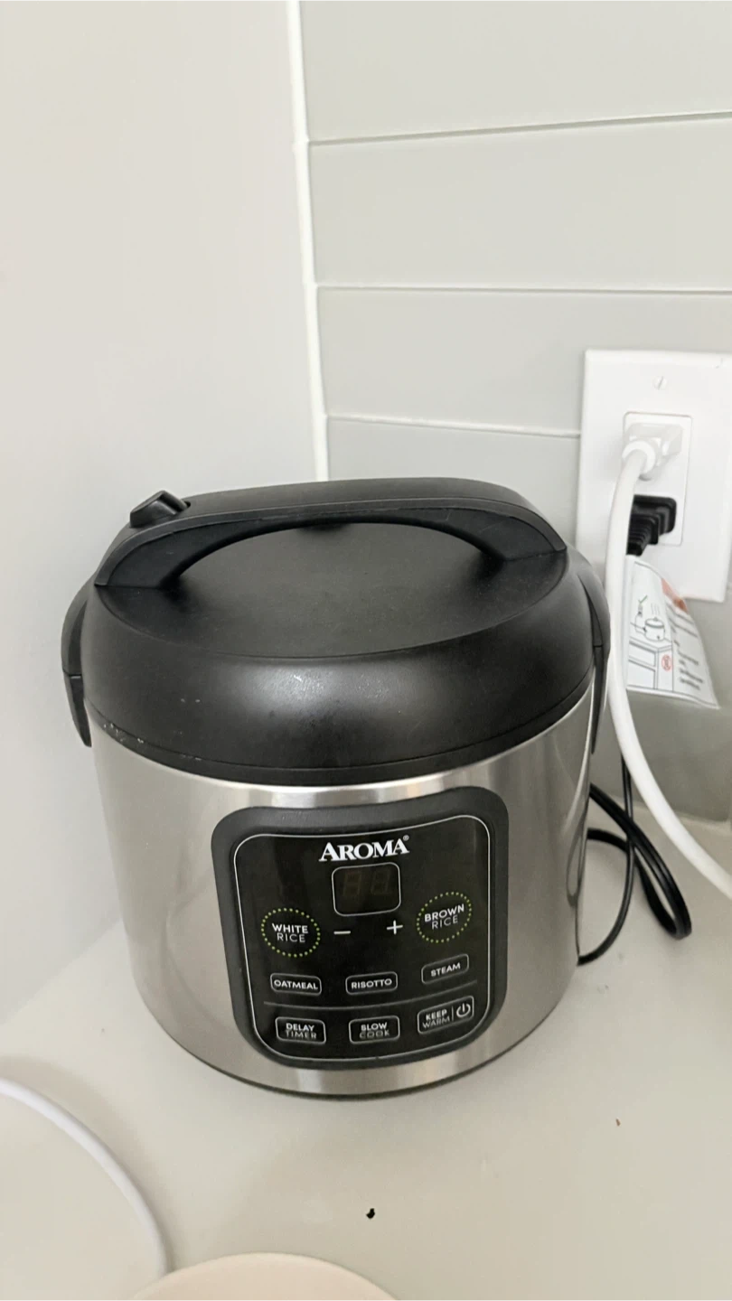 Selling an Aroma rice cooker! It has settings for white rice, brown rice, oatmeal, risotto, and more. It also has a delay timer and a slow cook function