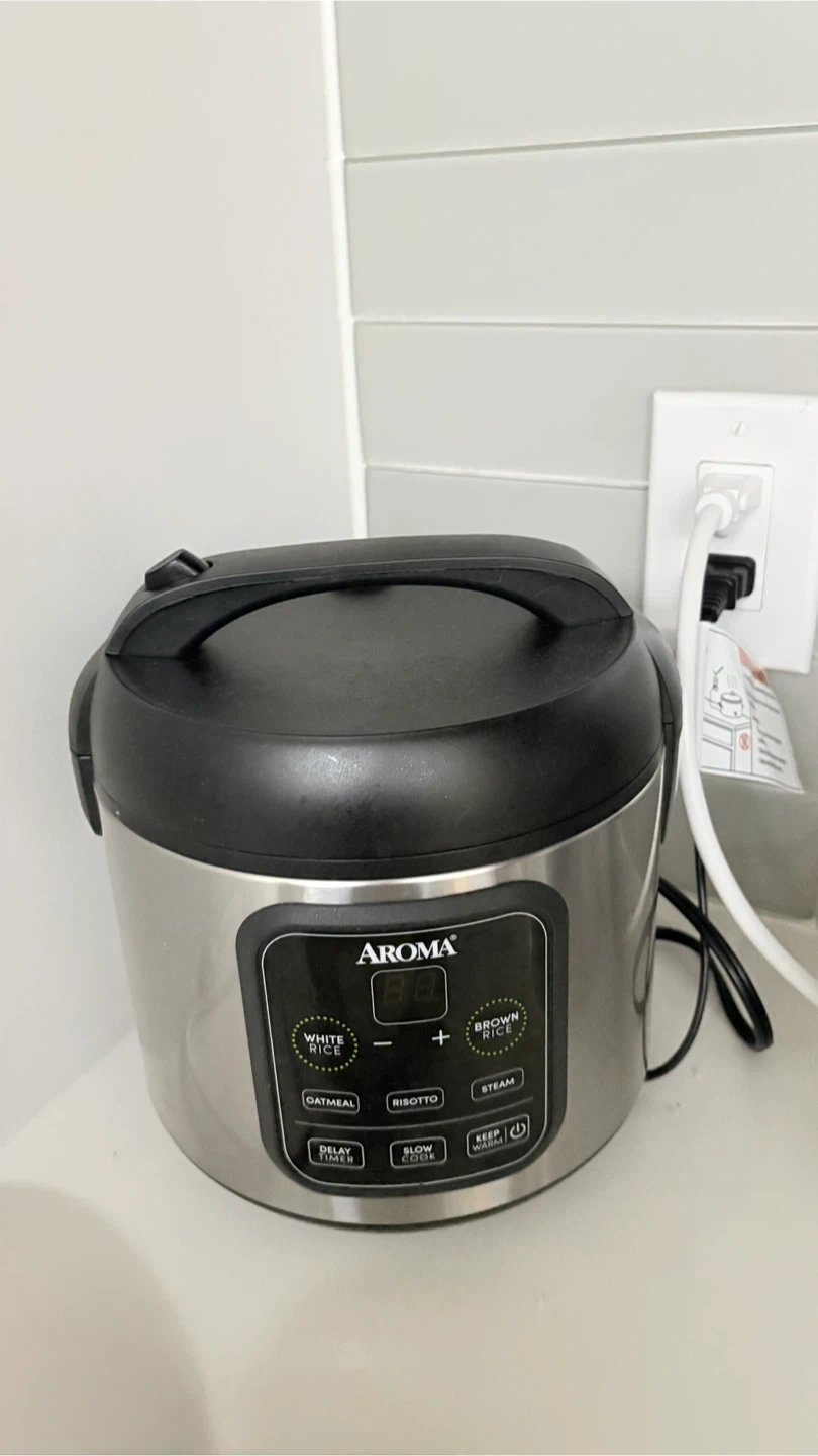60Selling an Aroma rice cooker in great condition! It has settings for white rice, brown rice, oatmeal, risotto, and more. It also has a delay timer and a keep warm function for your convenience