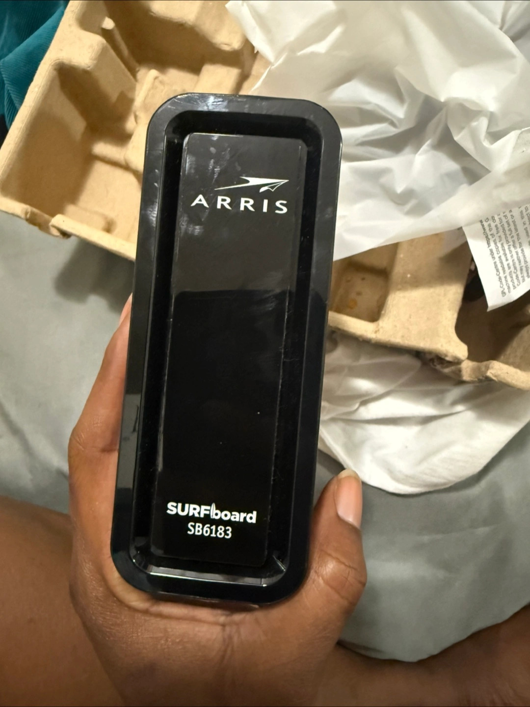 Selling an Arris SURFboard SB6183 cable modem. It comes with the original box and all included components, such as the charger and cables. Great for upgrading your internet setup!
