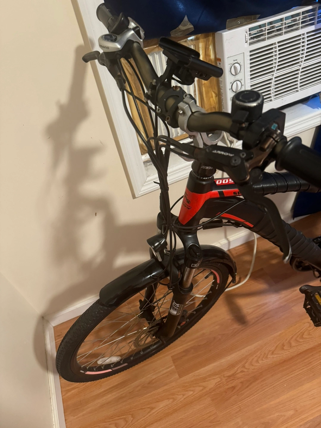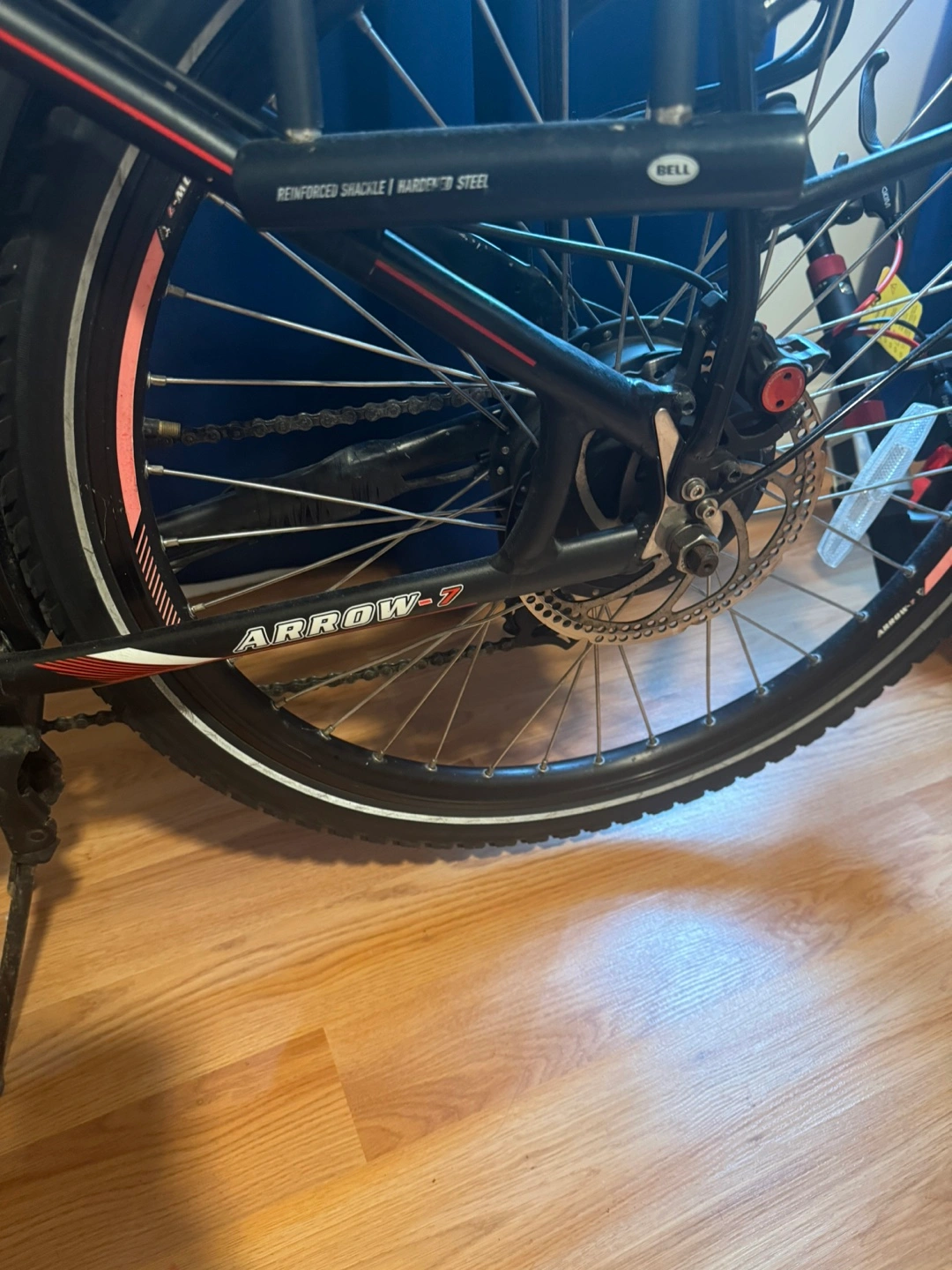 15The frame is in red and black. It has a front suspension. Has front and back mudguards. A fantastic way to be outdoors, getting some fresh air. Arrow e bike