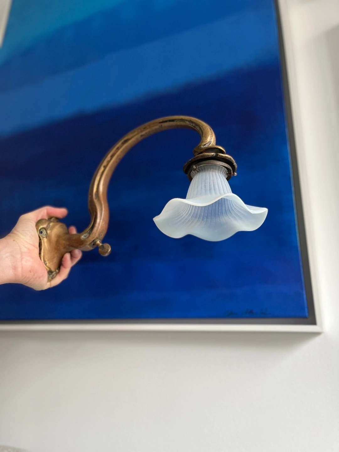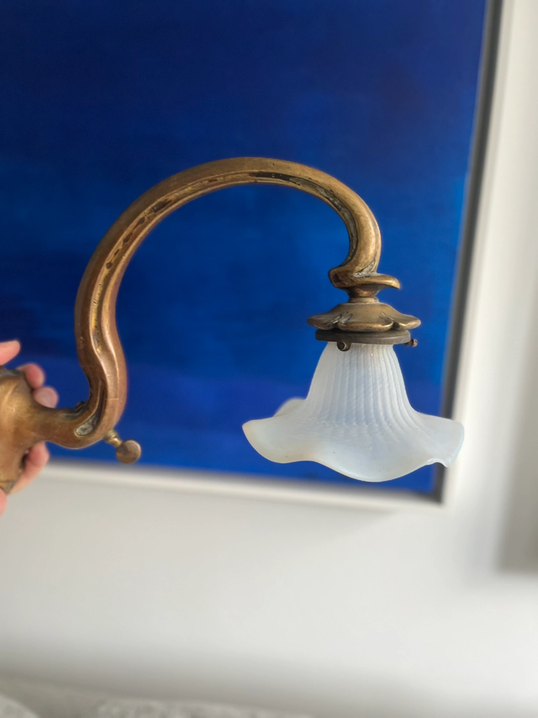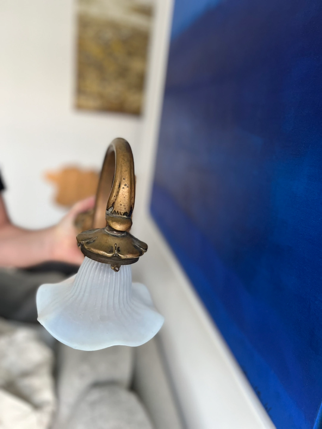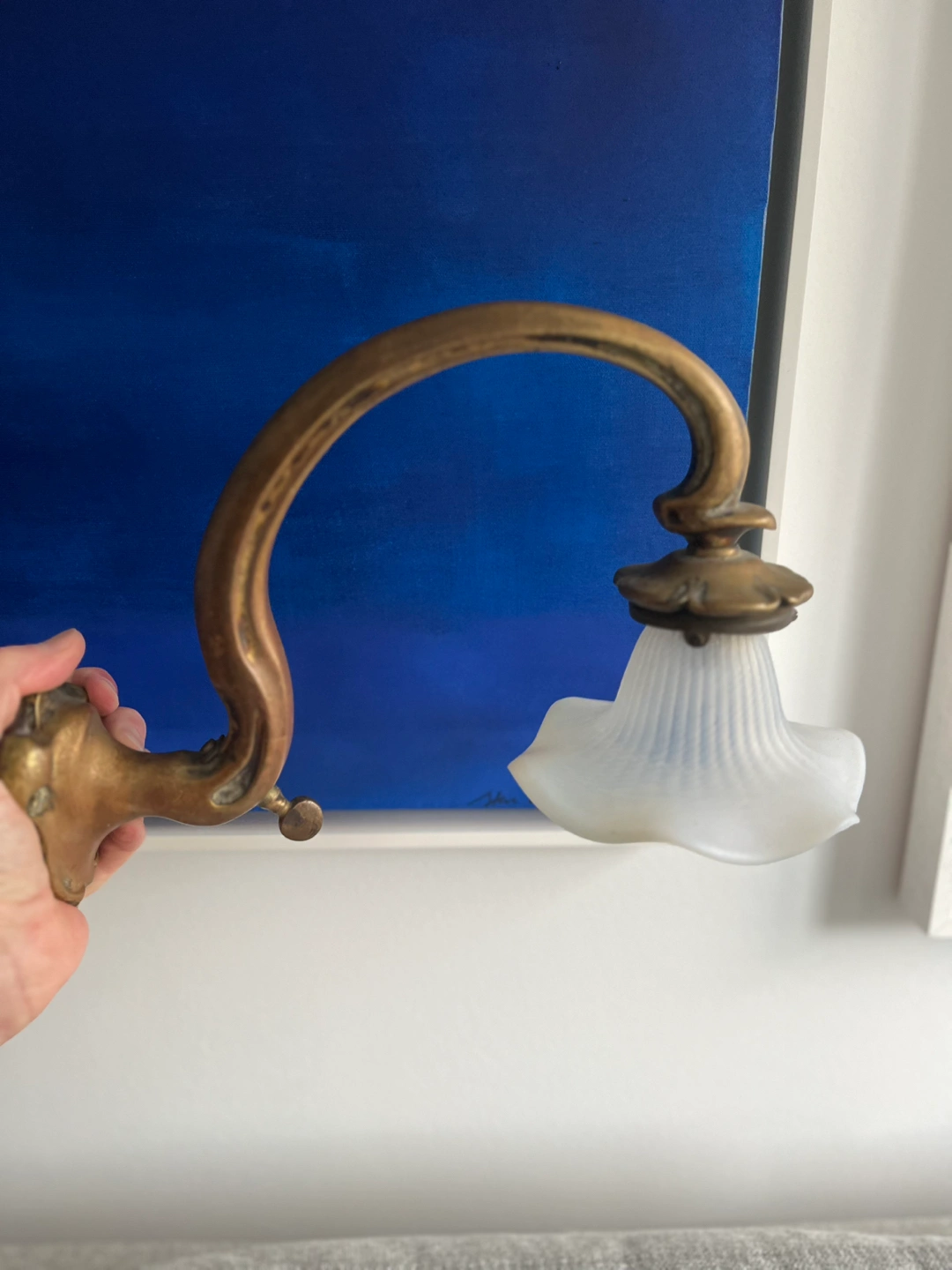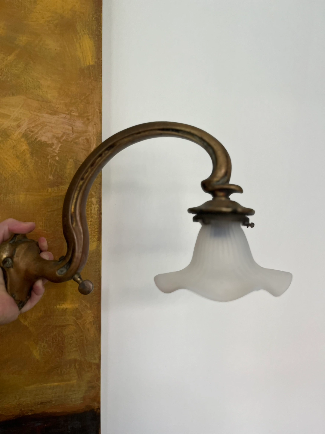 15Authentic 1920 Art Nouveau lamps (2) bought in Brussels for 900 euros (bought at the Sablon antique fair in 2017). Original gas lamps (now updated and wired). Unbelievable statement pieces