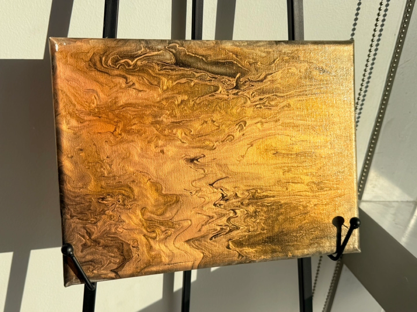 95Original fluid acrylic pour painting. Gold and black tones. Canvas stretched on a wooden frame. Perfect for modern home decor.