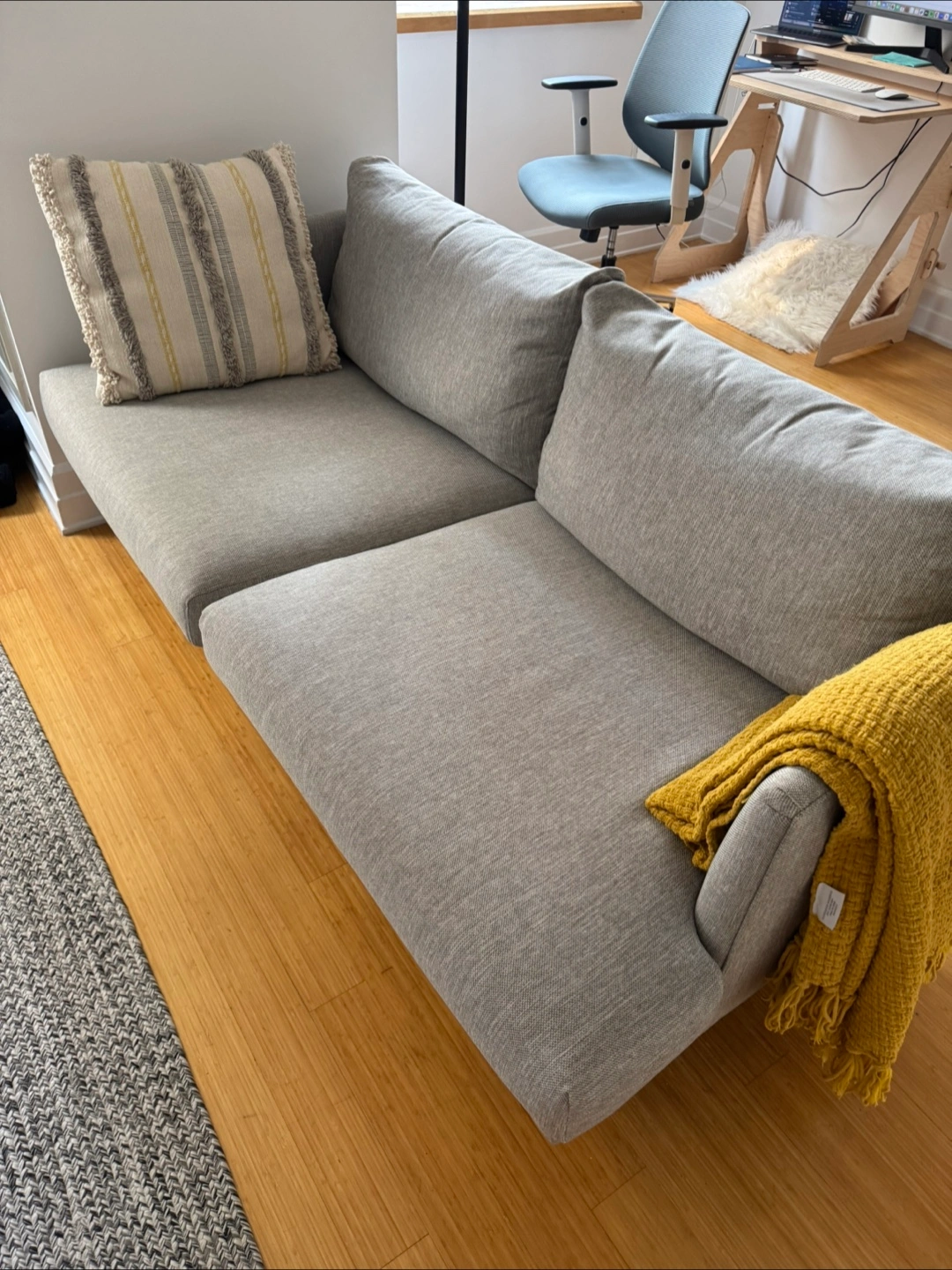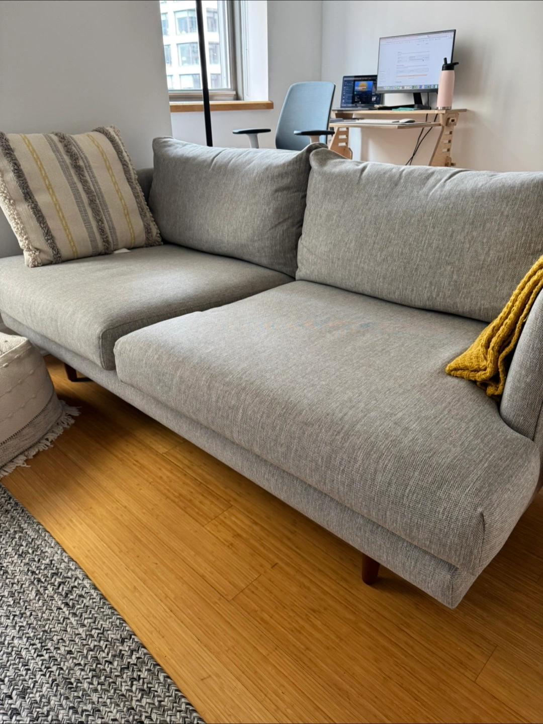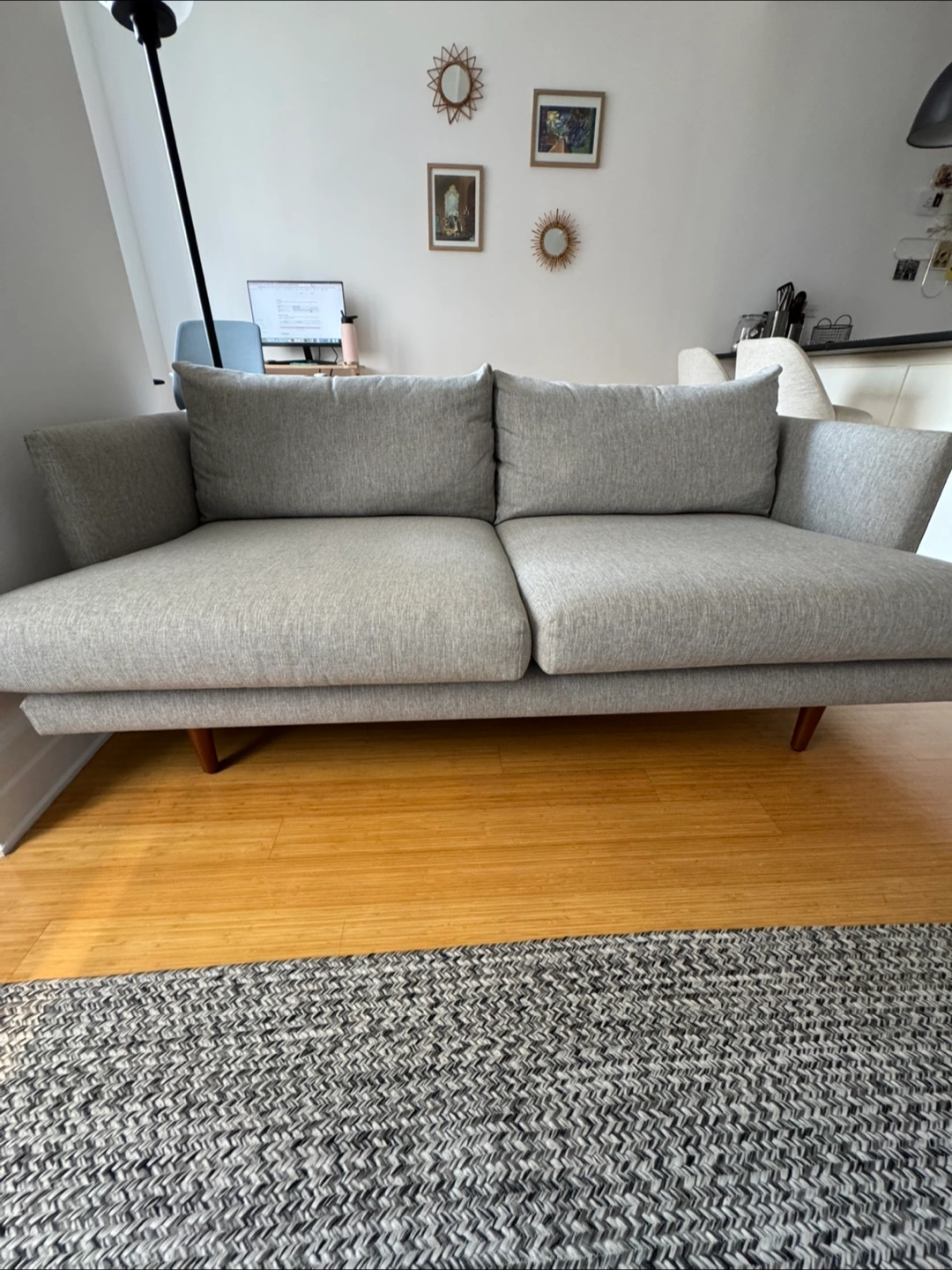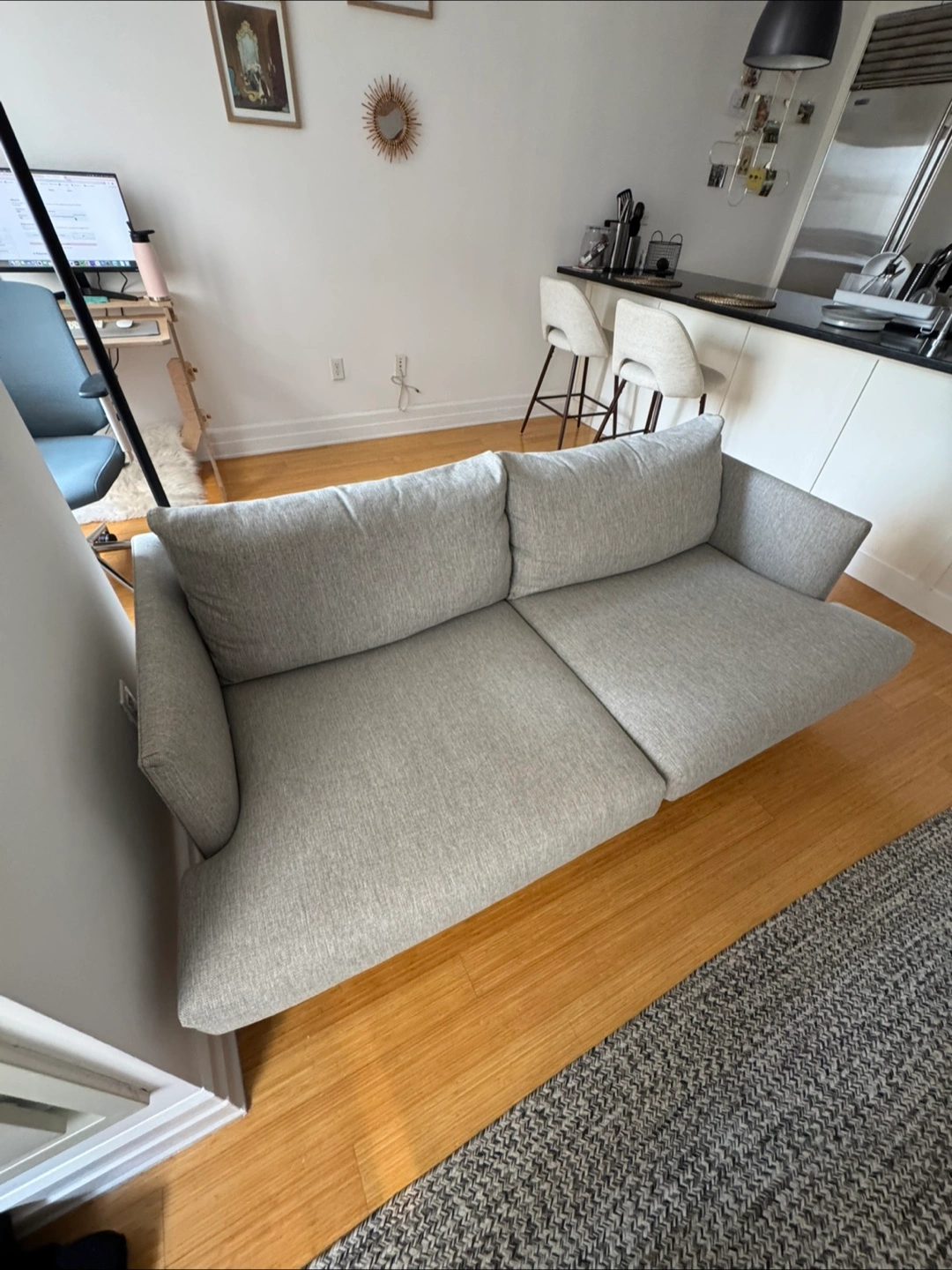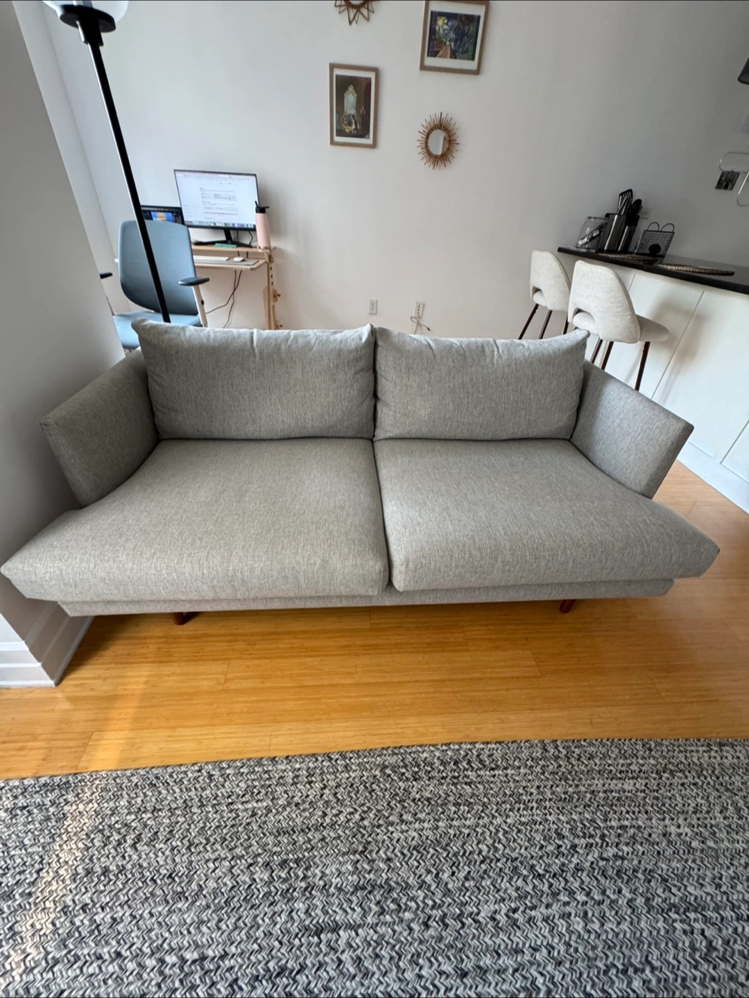 Burrard 67” loveseat by Article. Under two years old and in mint condition. Dimensions: 33”H x 67”W x 35”D Seat depth: 24” Easy to transport around with minimal assembly. Cushions are removable, and legs screw on/off. RRP $1099. Needs to be picked up by /on Sept 2 at latest.