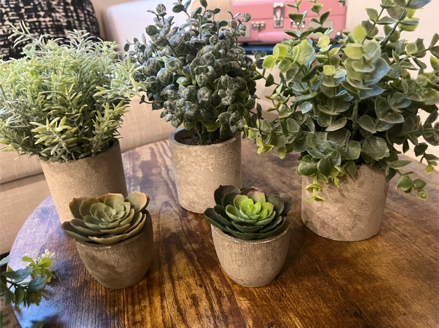 Selling a collection of artificial succulents and greenery. They are perfect for adding a touch of green to your home without the maintenance of real plants. These faux plants come in various sizes and styles, ready to brighten up any space