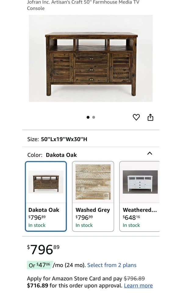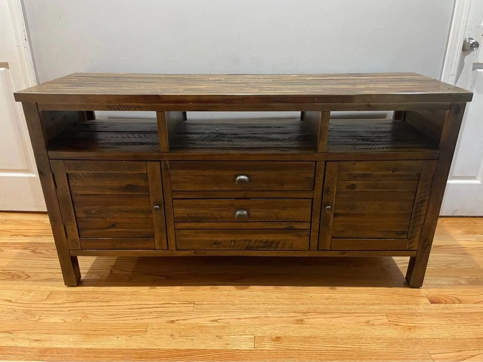 65Artisan's Craft 50" Farmhouse Media TV Console 50“L x 19“W x 30“H Tv console was barely used, as seen in the last picture. Brand new, it cost $800 plus tax on Amazon. Pick up available between 8am - 7:30 p.m.