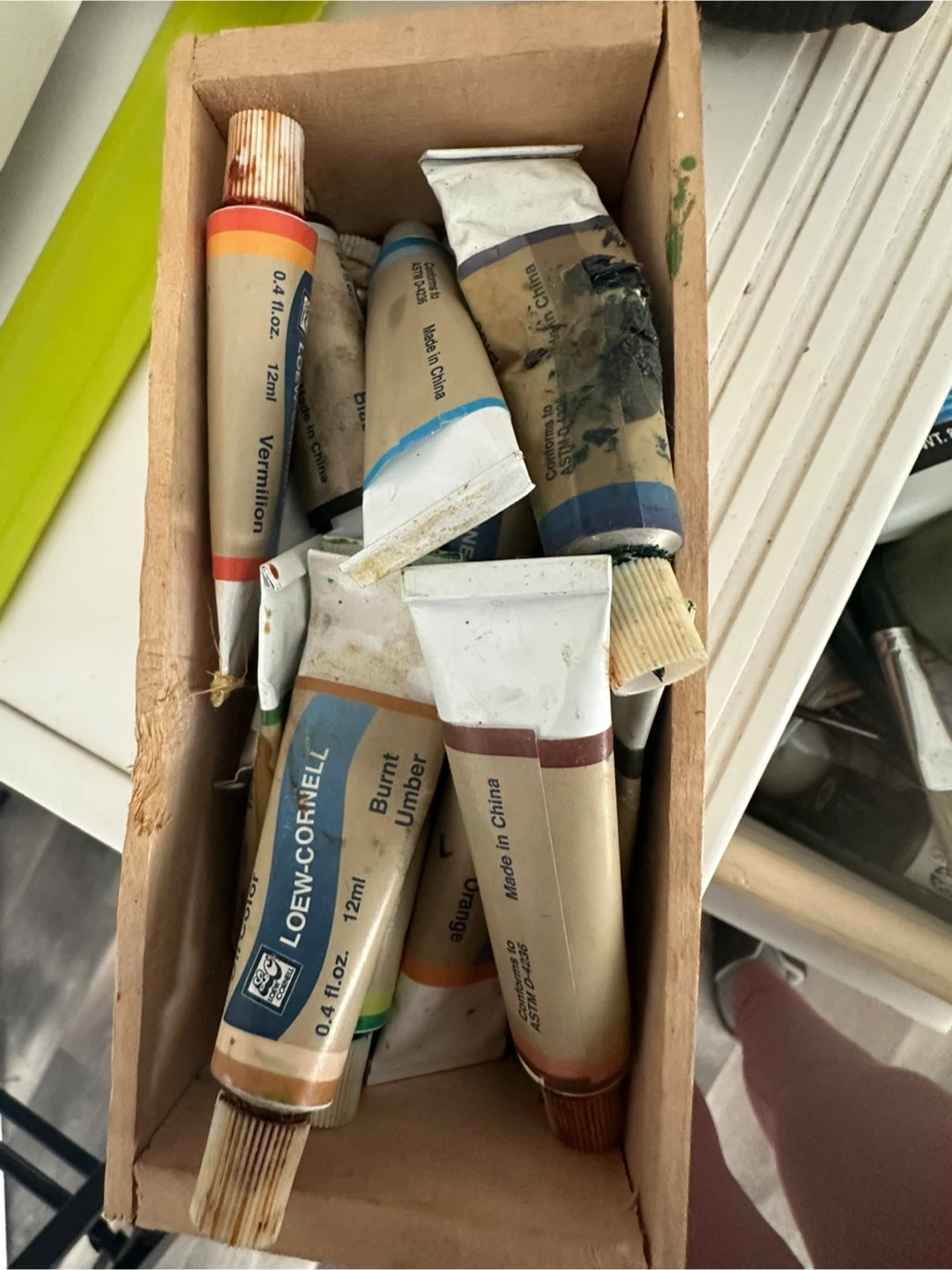 18Selling a collection of artist oil painting supplies. Includes Winsor & Newton Distilled Turpentine (75ml), Gamblin Galkyd Oil Painting Medium (4.2 fl oz), paint brushes, palette knives, and a blank canvas on an easel All that you can see in the picture for paint