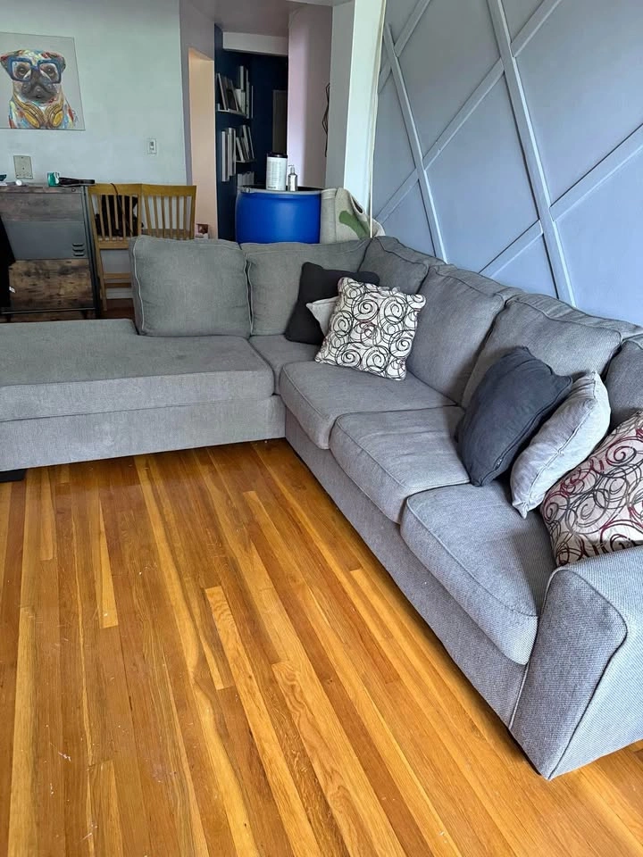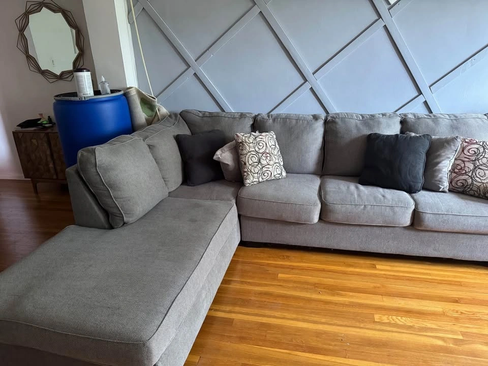The furniture is in good condition, we just bought new ones. It only has a small stain. Larusi Left-Arm Facing Corner Chaise SKU: 1350216 Dimensions: 36"W × 89"D x 38"H Qty: 1 Larusi Right-Arm Facing Sofa SKU: 1350267 Dimensions: 78"W × 38"D x 38"H