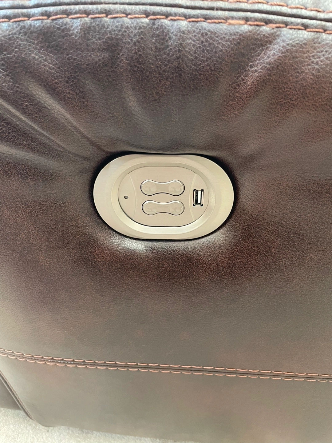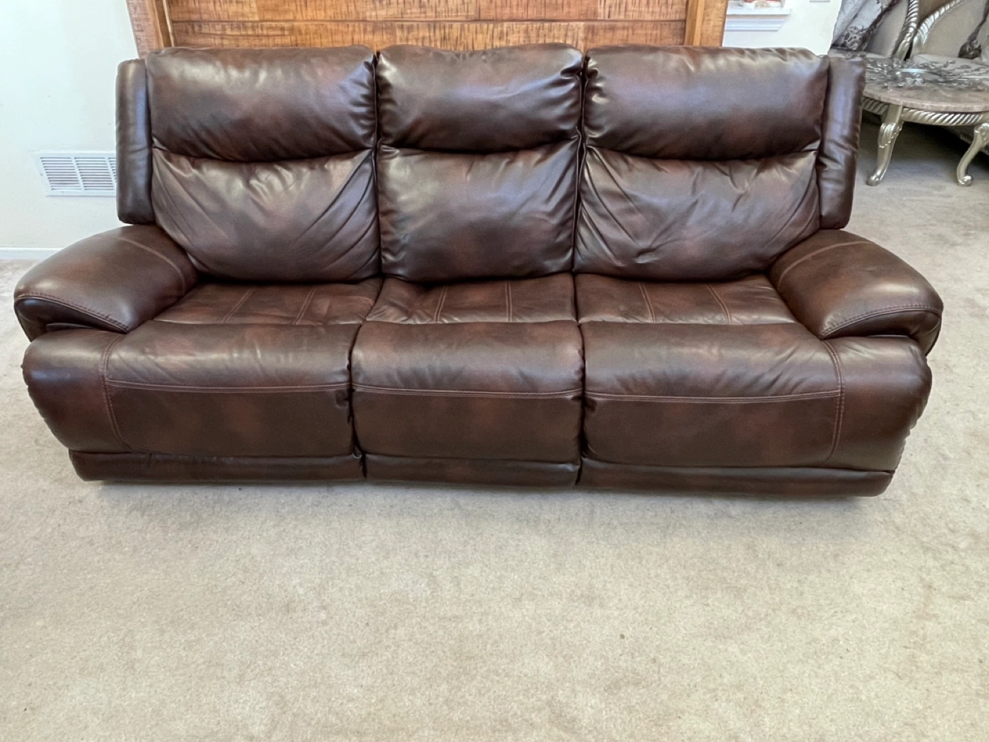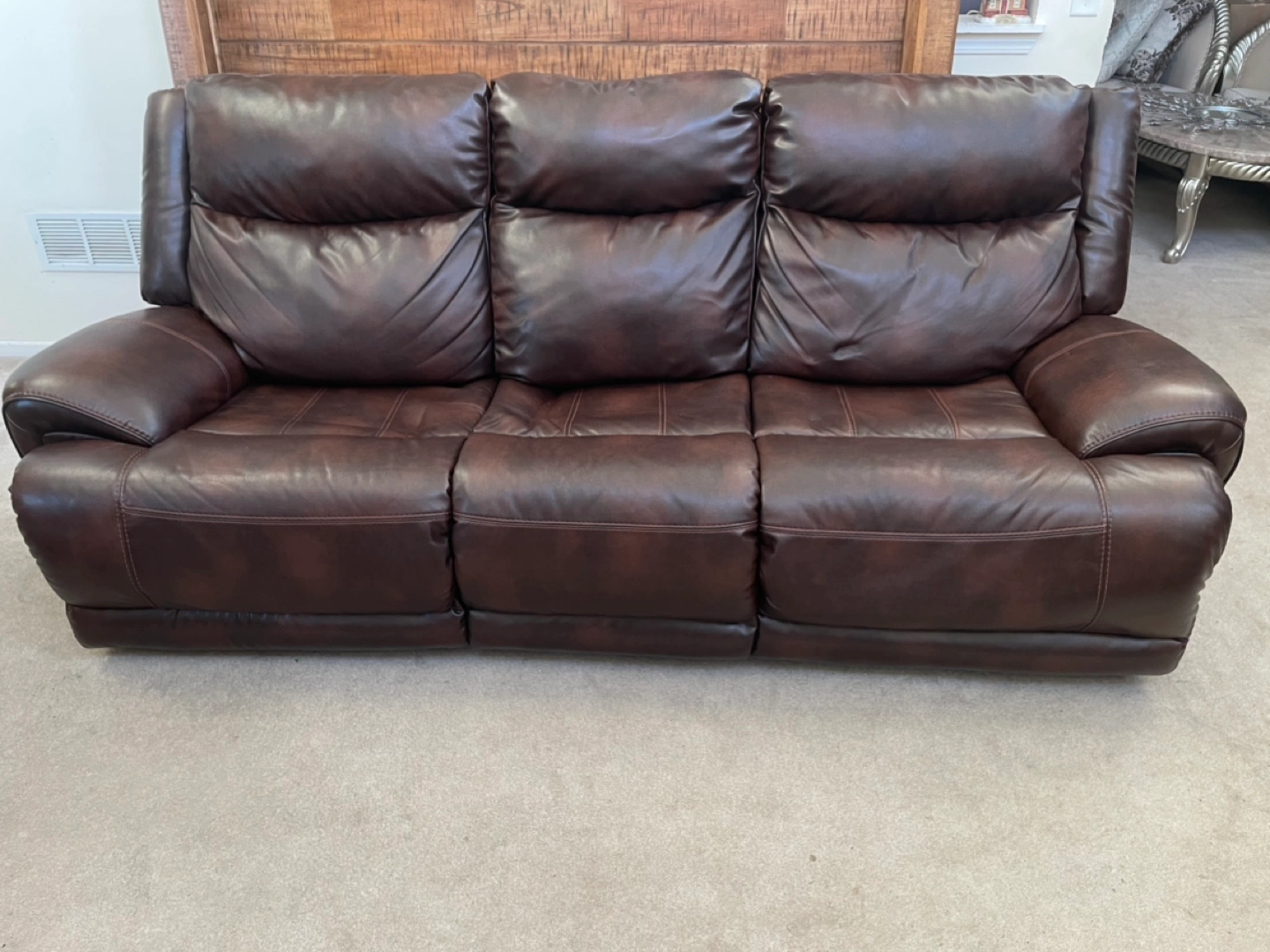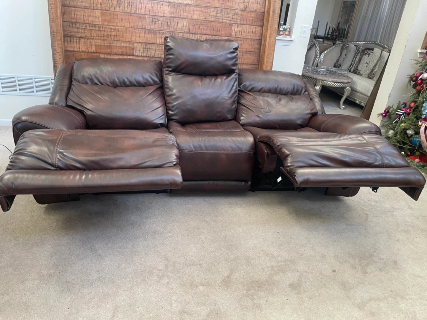 10Ashley Furniture Three Seater Blairstown Power Reclining Leather Sofa with USB power port Measures Depth (in.) 40 Width (in.) 95 Height (in.) 42 Used, in good condition