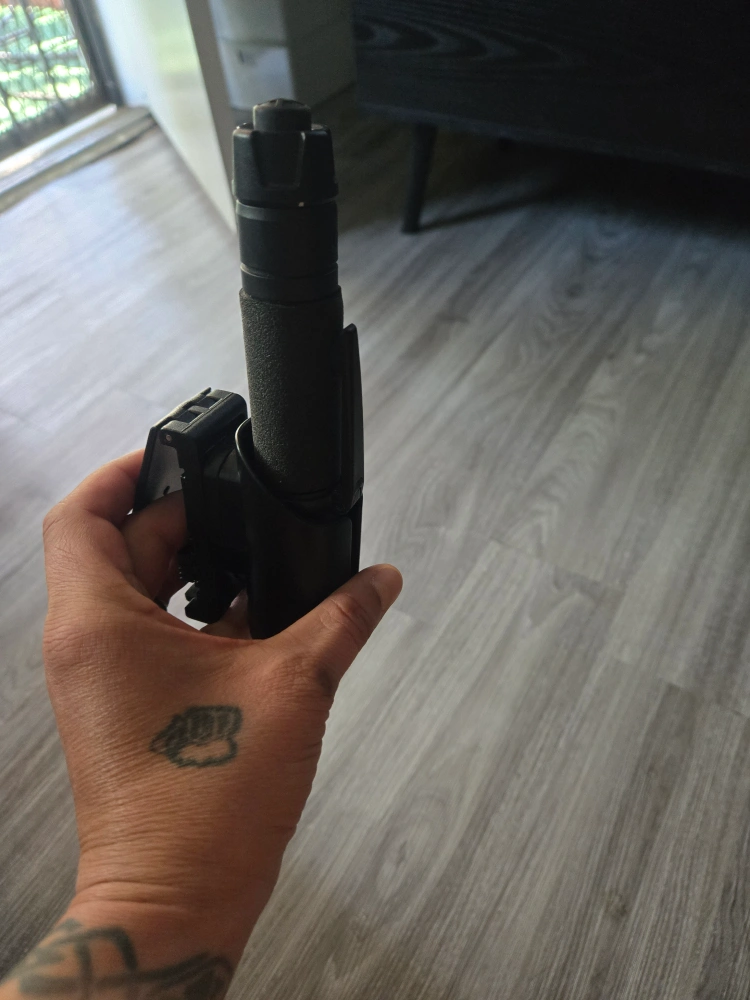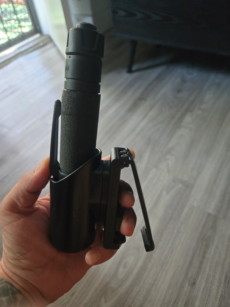 Selling a barely used ASP black flashlight with a holder. Holder is an option as it was bought separately. It's in good condition and ready for use! Muti function. One of the best flashlight I've seen. Barely used.