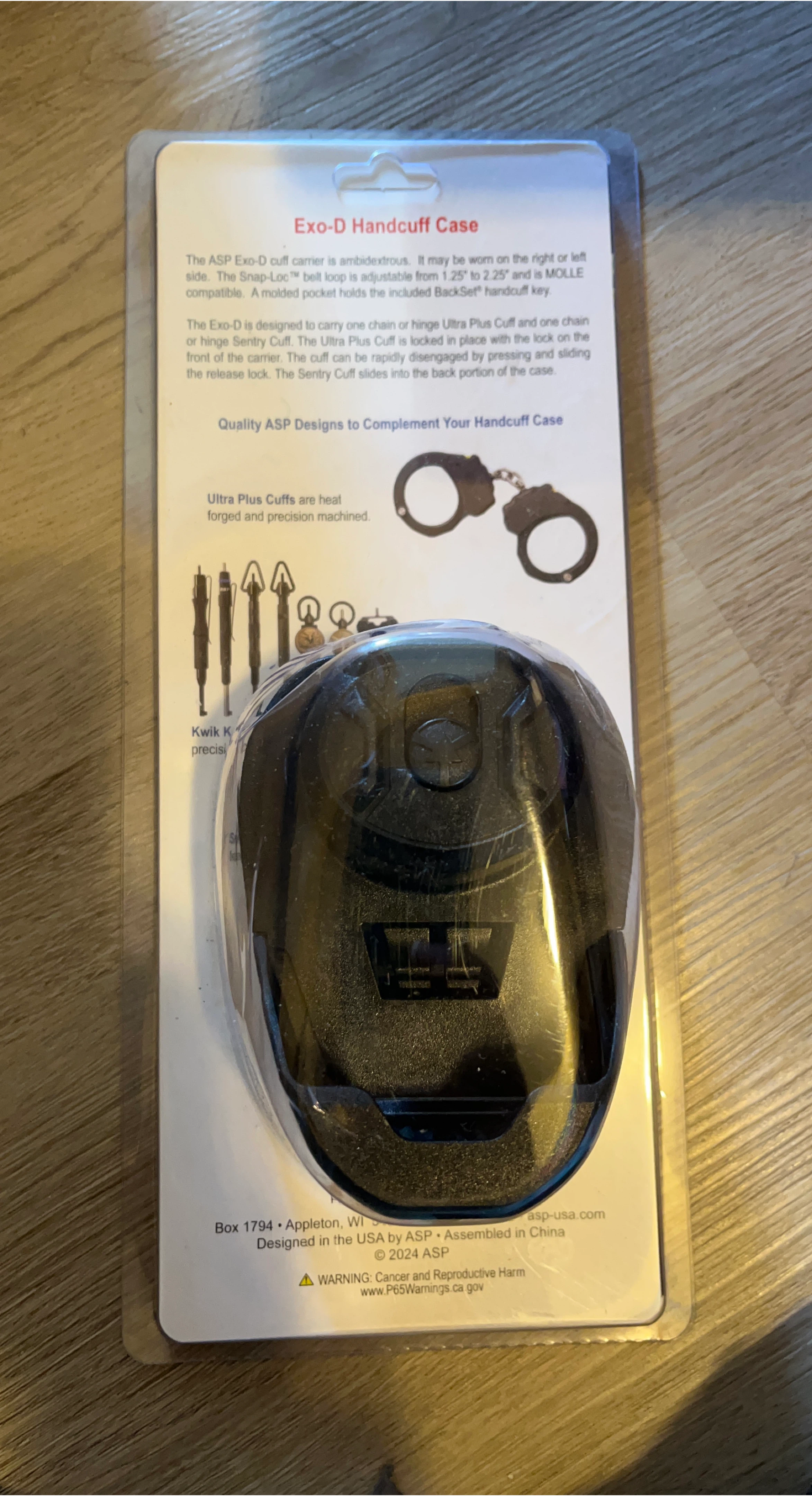60Selling a brand new ASP Exo-D Handcuff Case! This ambidextrous cuff carrier can be worn on either the right or left side. The Snap-Loc belt loop is adjustable from 1.25" to 2.25" and is MOLLE compatible. It's designed to carry one chain or hinge Ultra Plus Cuff and one chain or hinge Sentry Cuff. The Ultra Plus Cuff locks in place with the lock on the front of the carrier. Quality ASP design!