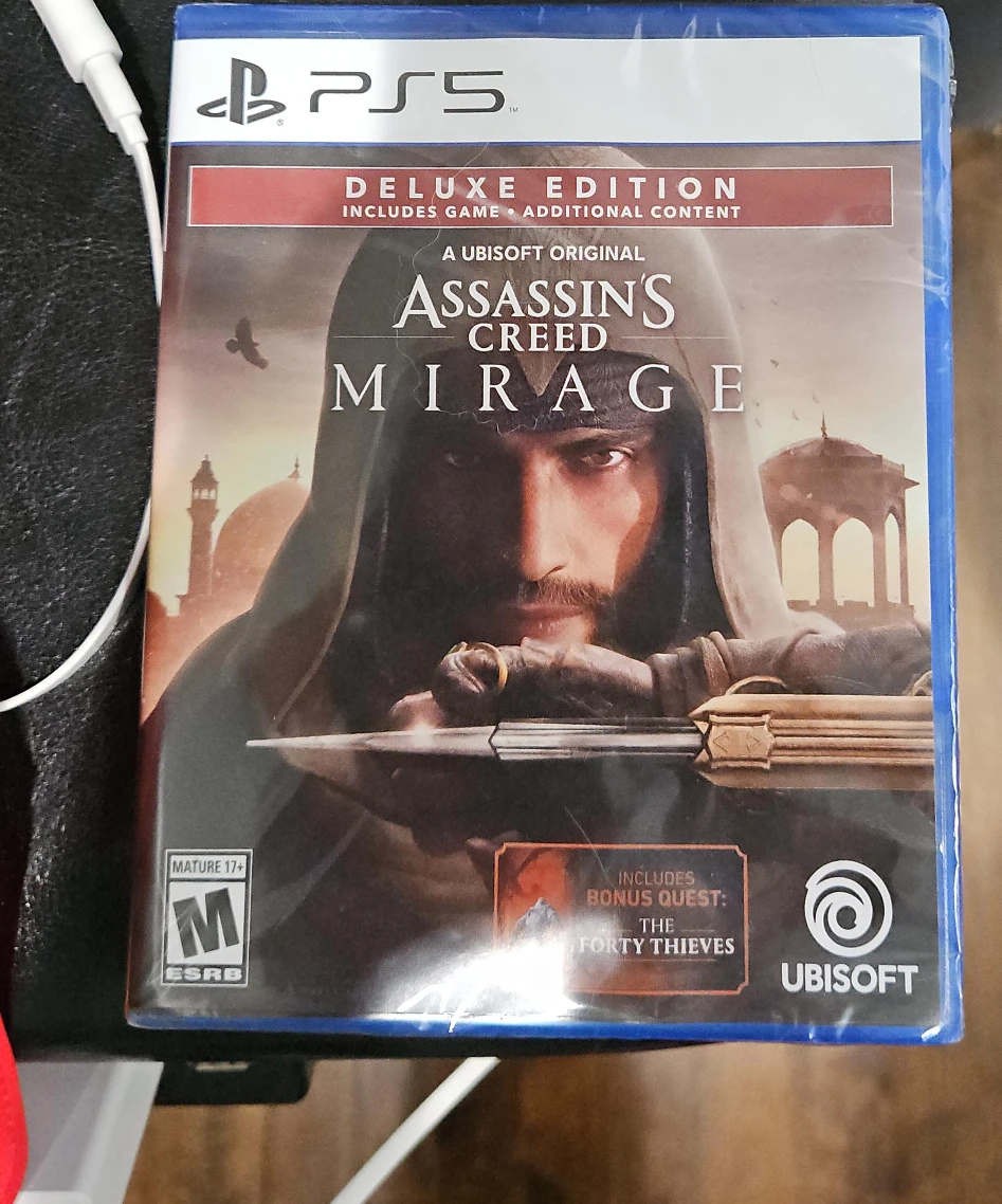 10Selling Assassin's Creed Mirage Deluxe Edition for the PS5! This is a Ubisoft original game that includes the bonus quest: The Forty Thieves, along with additional content. Rated M for Mature 17+ by the ESRB, it includes game and additional content!