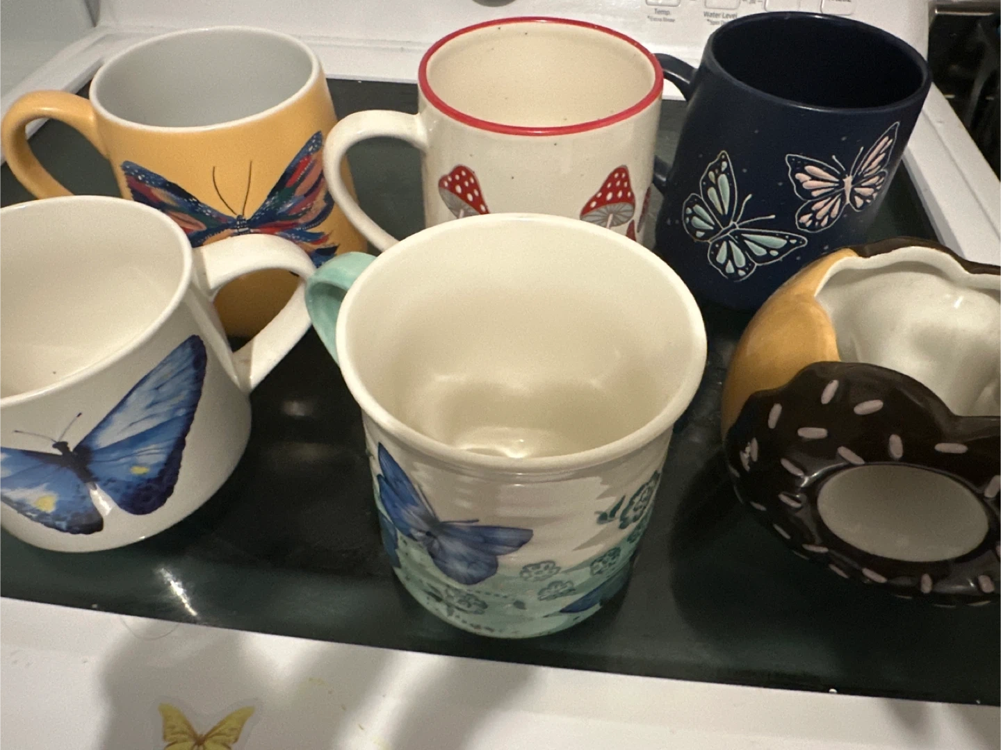 60Selling a collection of decorative coffee mugs! There's a variety of designs, including butterflies and mushrooms. They're perfect for adding a touch of charm to your morning coffee or tea. Feel free to take one or all!