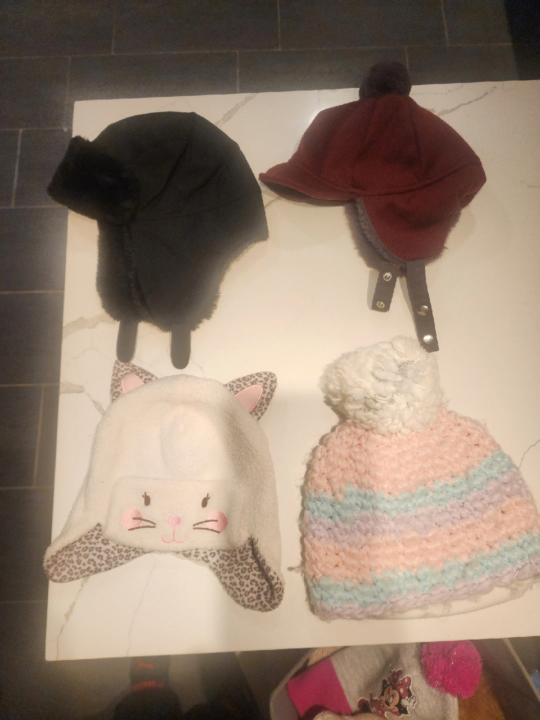 15Selling a collection of assorted kids' winter hats. They come in various styles and colors, perfect for keeping your little ones warm during the cold weather. There are several hats with different designs, including animal-themed and character-themed ones! 1 = $8 2 = $10 3 = $15 4 = $20 5= $24