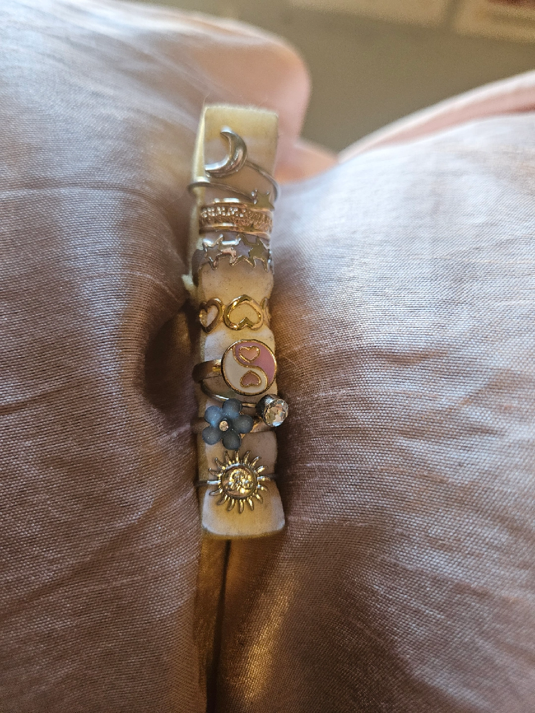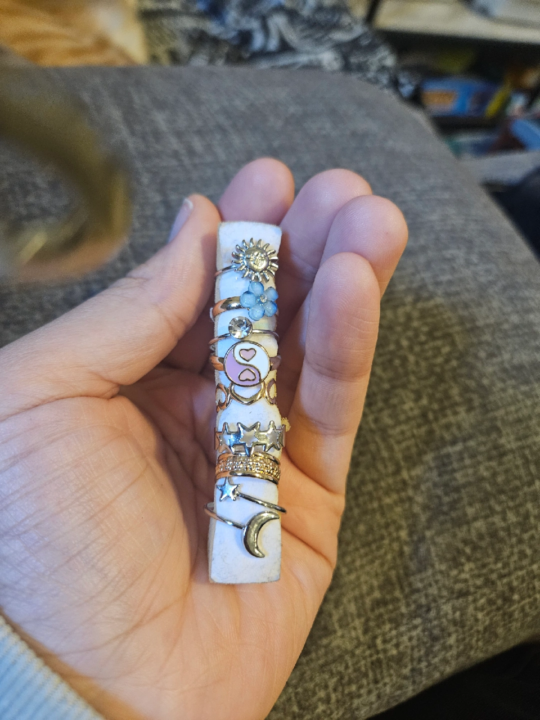 5Selling a collection of assorted rings/ toe rings! There's a variety of designs, including a moon, stars, a yin yang symbol, and flowers. They're in good condition and ready for a new home