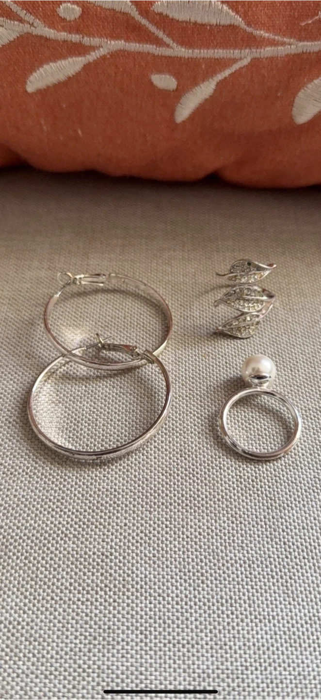 Selling a set of 2 silver rings and hoop earrings. Good condition. Rings size 7.5-8
