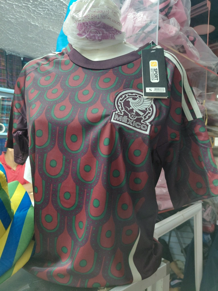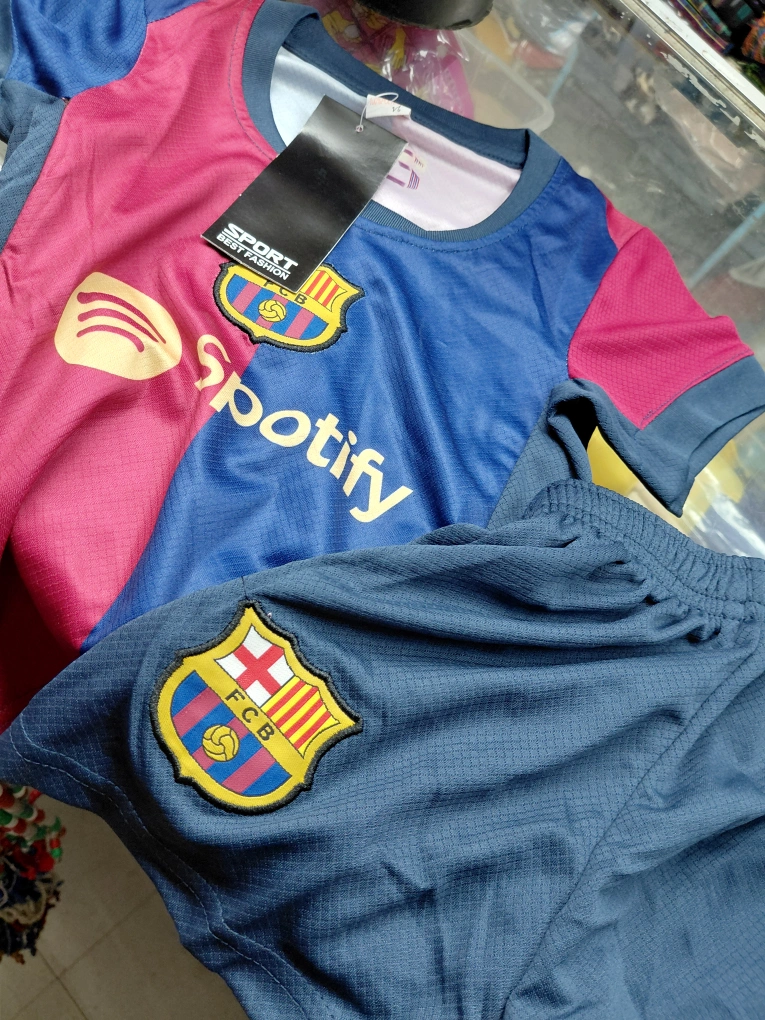 A collection of soccer jerseys in various colors and designs. They feature logos of different teams and brands. Perfect for any soccer enthusiast!
