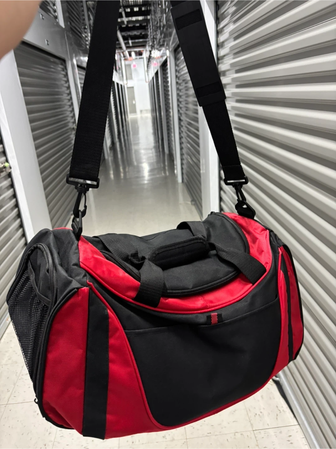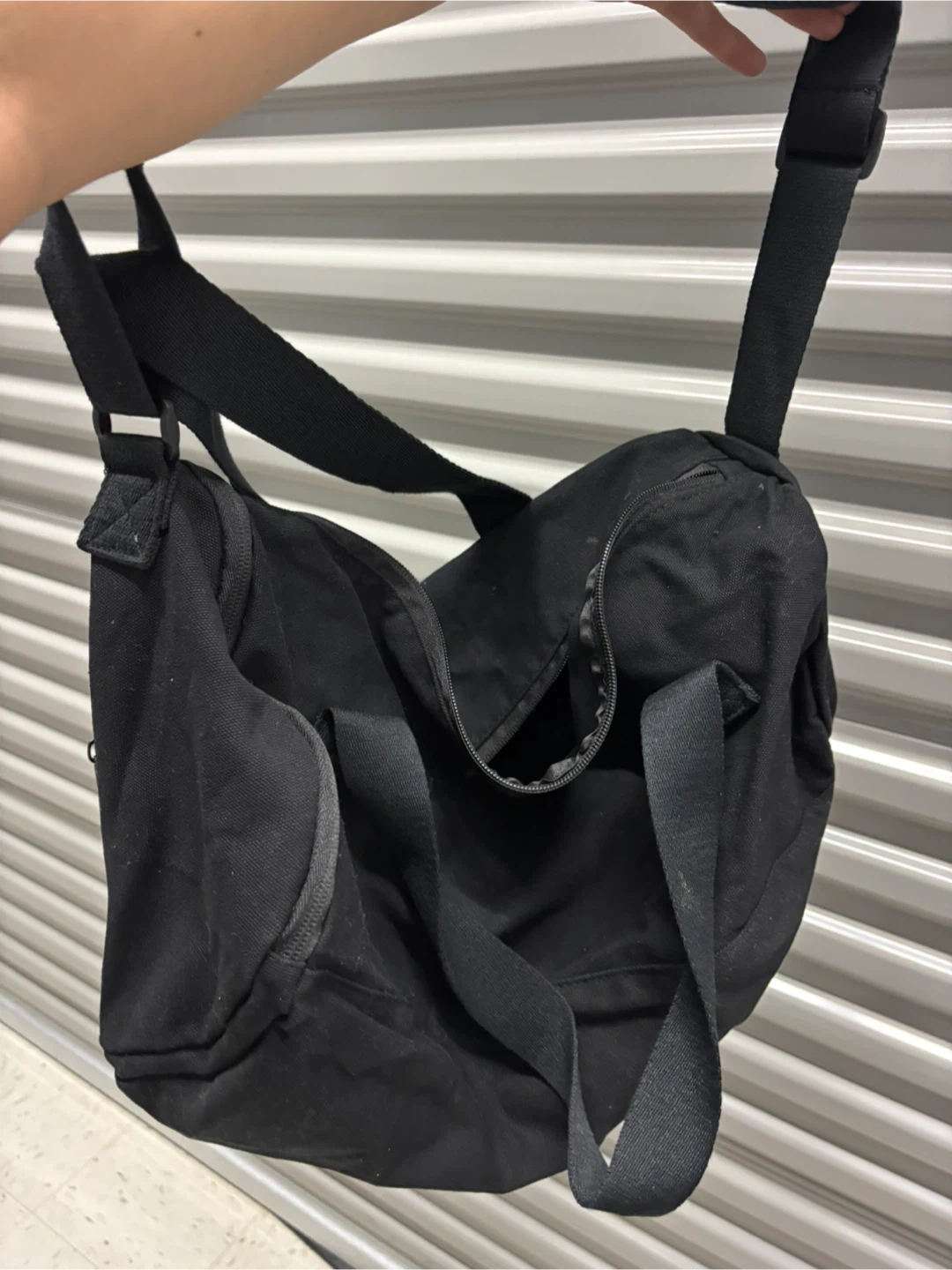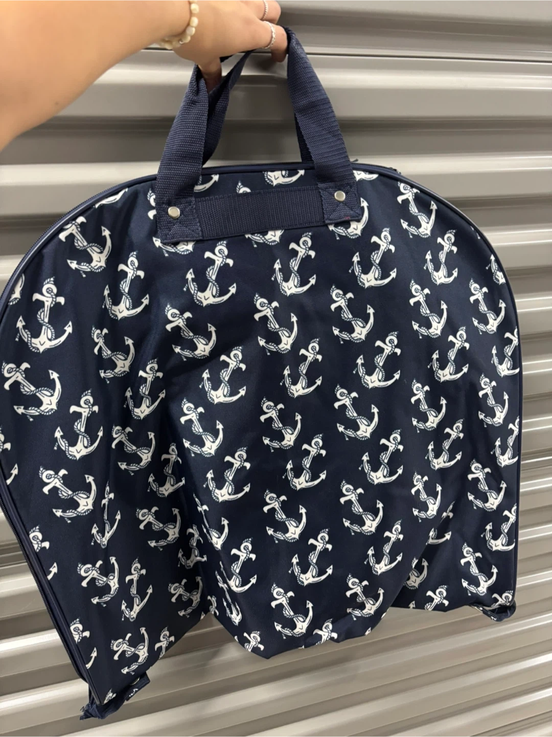 60Selling a variety of tote bags and garment bags! There's a black messenger bag, a pink and white tote bag, a blue duffel bag, and a navy garment bag with an anchor pattern. All in good condition and ready for a new home