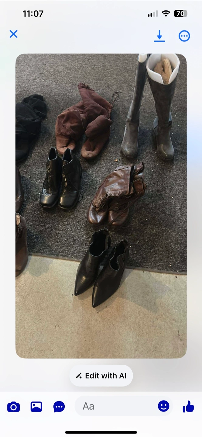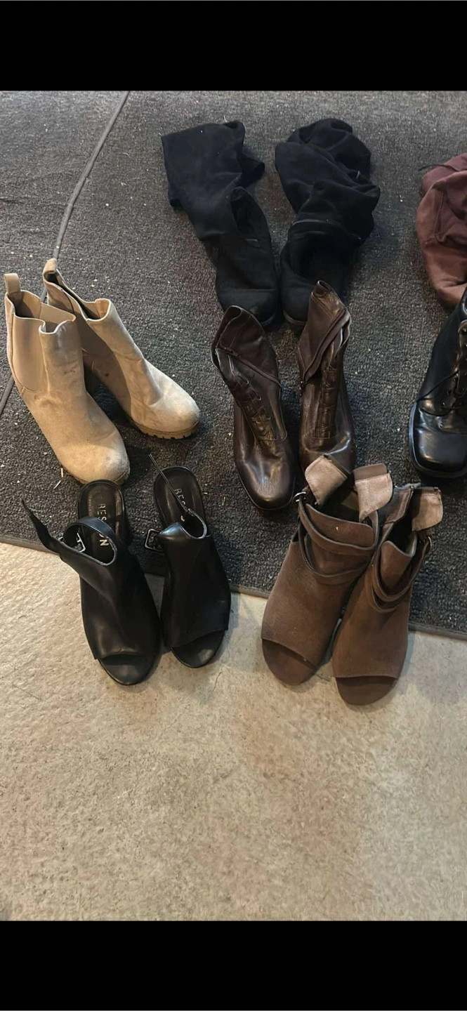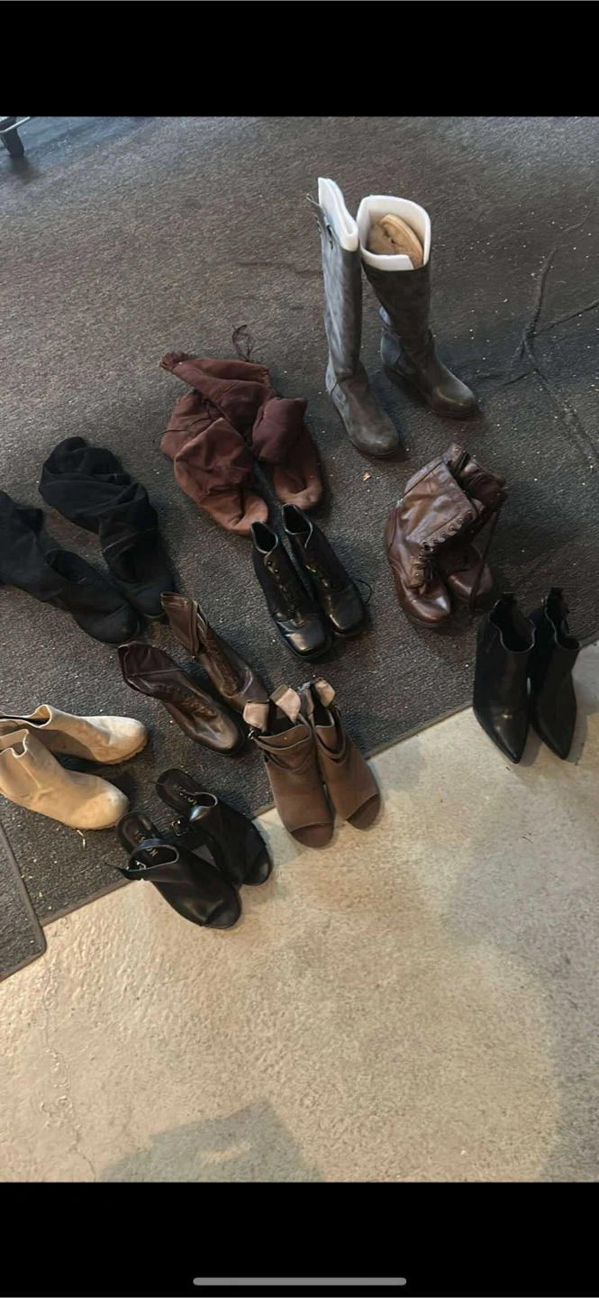 A collection of shoes and boots in various styles and colors. There are a few brand new never used 6.00 each pair