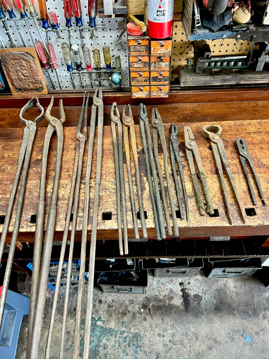 10Selling a variety of used tools including hammers, tongs, and an anvil. These tools show signs of wear but are still functional and ready for use in your workshop or for your projects