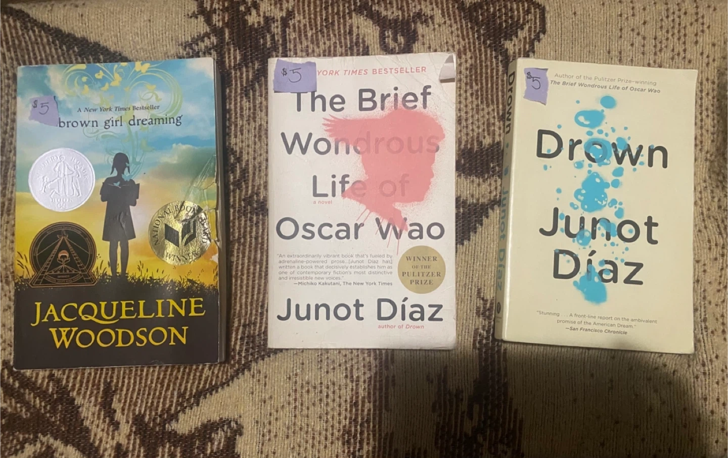 I Am Not Your Perfect Mexican Daughter' by Erika L. Sánchez - $5 Brown Girl Dreaming by Jacqueline Wood -$5 The Brief Wondrous Life of Oscar Wao by Junot Diaz -$5 Drown by Junot Diaz - $5
