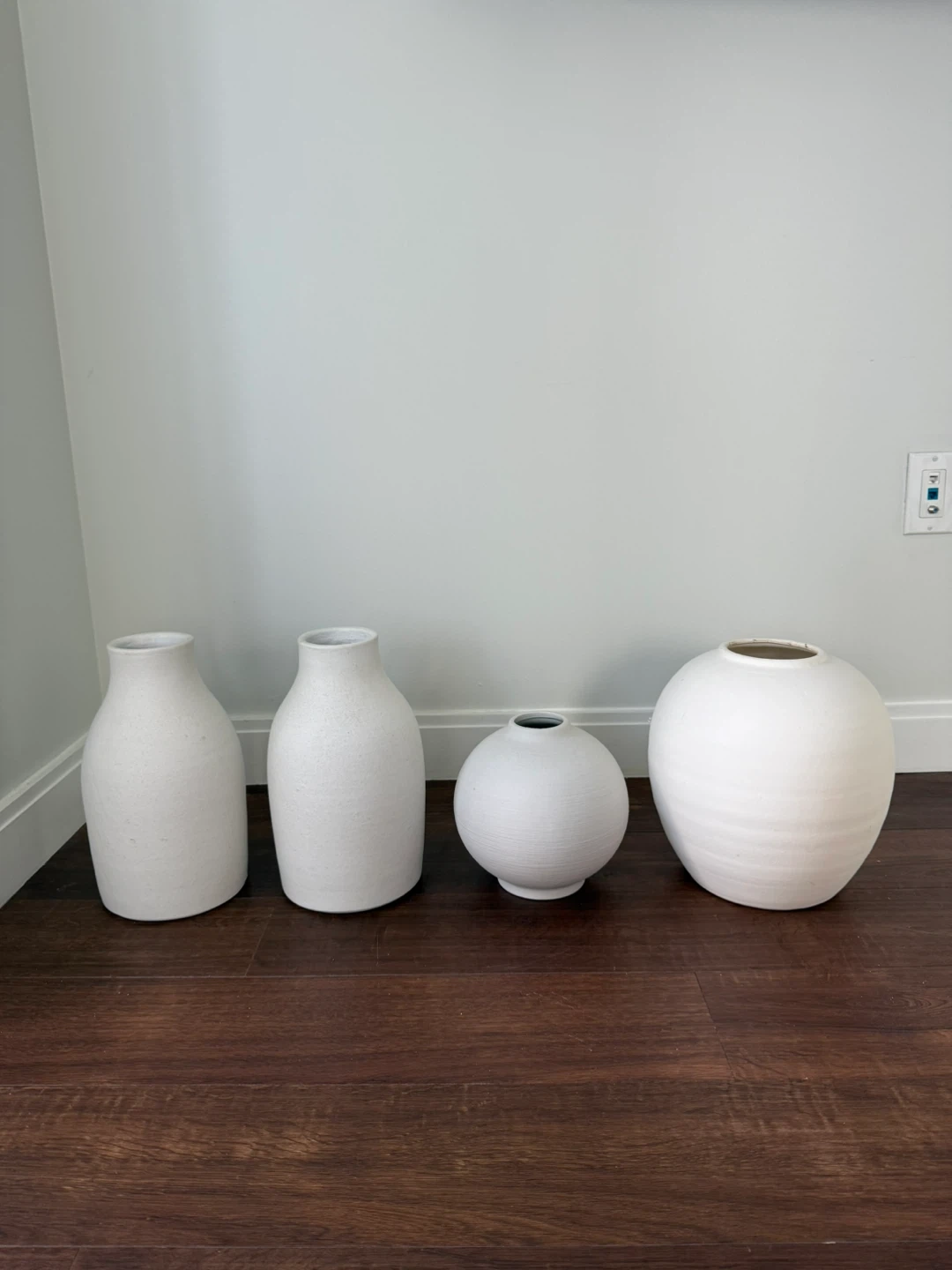 18Assortment of vases: • 2 bottle shaped vases: $20 for both • Medium sized round vase: $10 • Larger round vase: $20 $40 for all 4 together